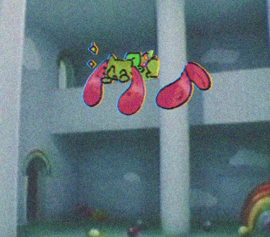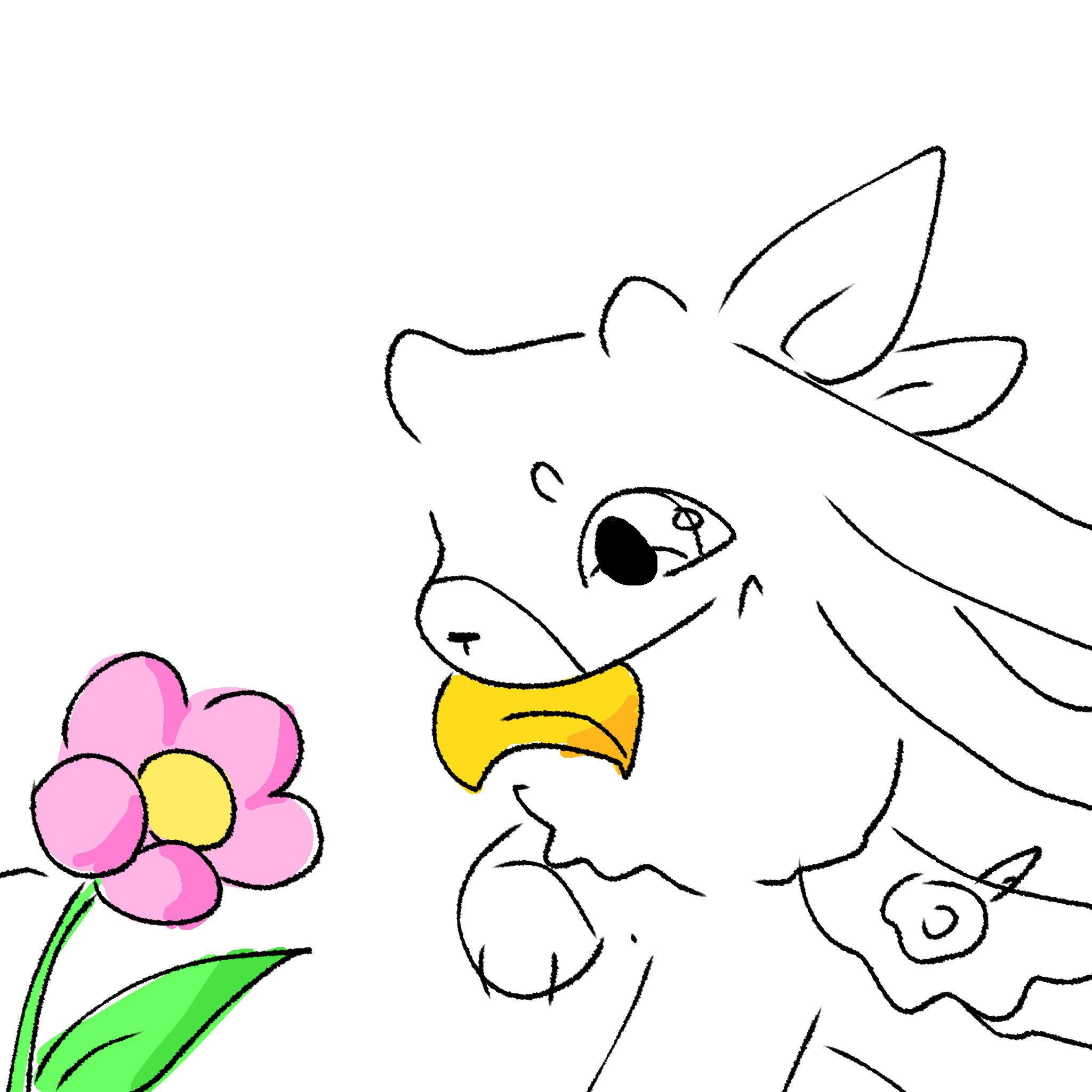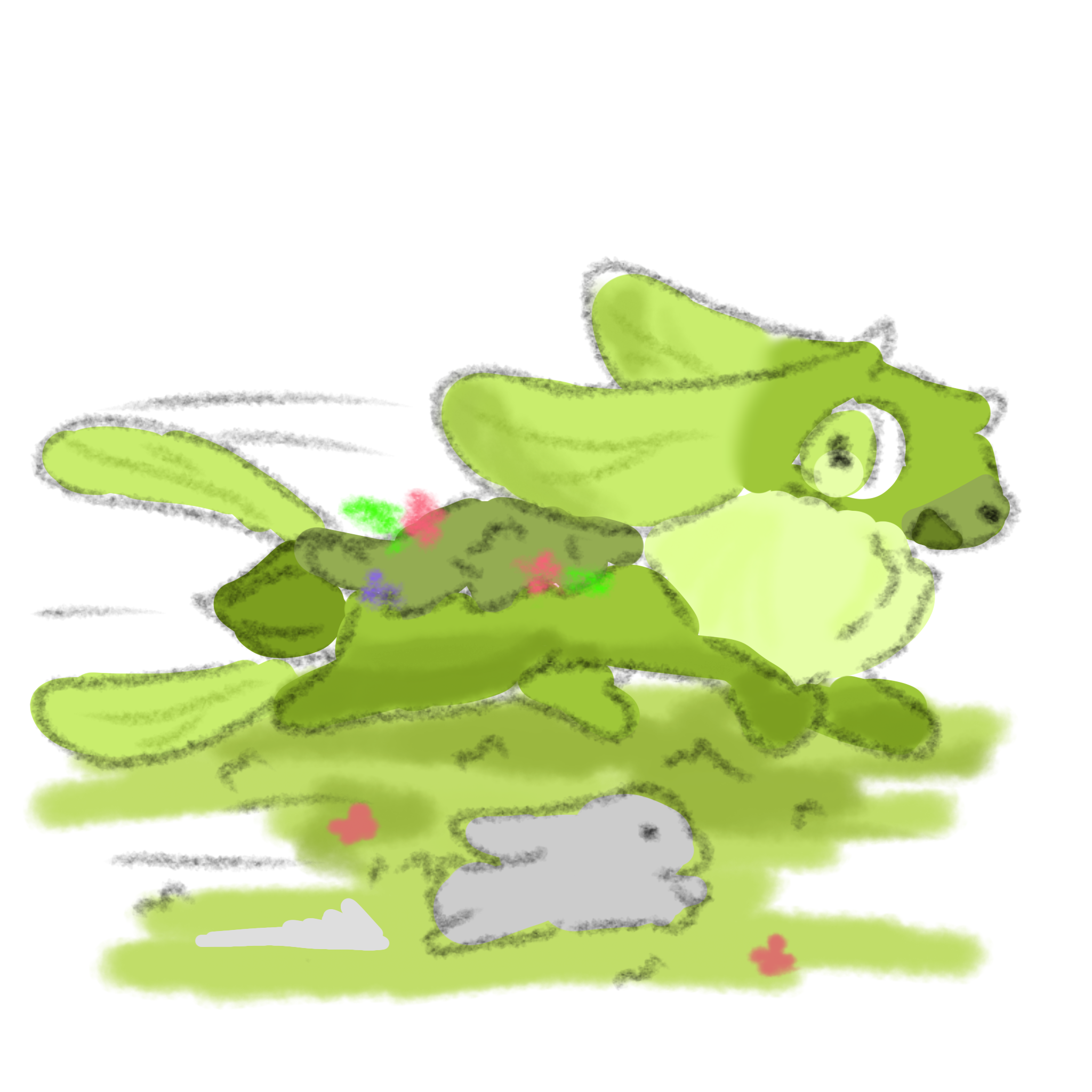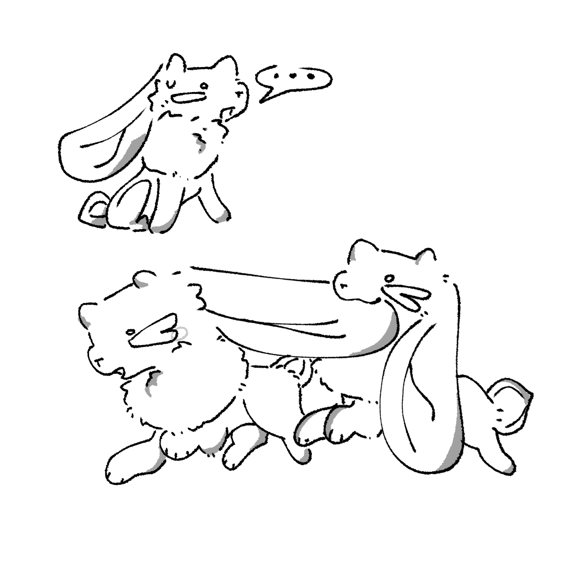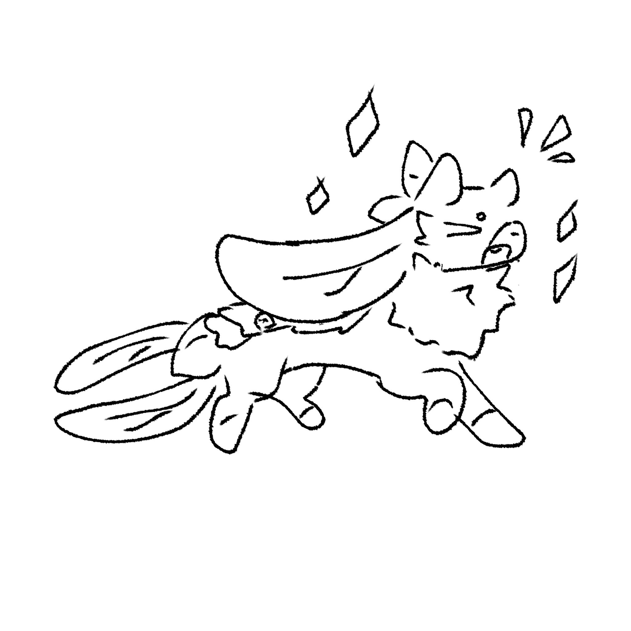 Kirumi hatches into a tiny creature with short, floppy ears that hang down at her sides. She is clumsy, often curling up in the grass or chasing butterflies. She also picks flowers by holding them in her mouth.