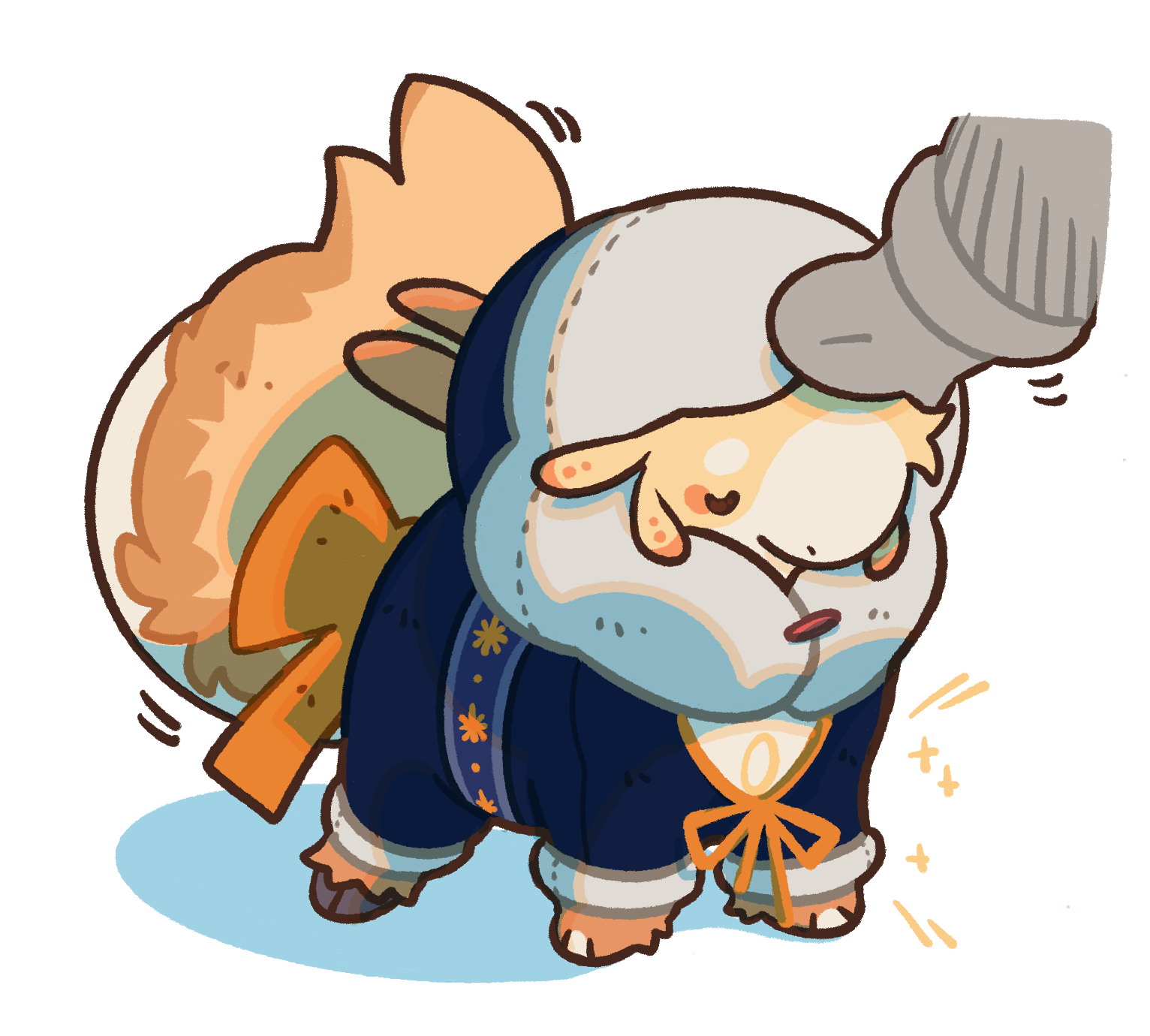 :: 정중앙의 작은 보석에서 희미한 빛이 새어 나와 앞을 비추고 있다. 설원의 추위에 대비해 테이머가 직접 만든 모자를 쓰고 있으나, 그 무게가 무거운지 종종 무게 중심을 잃고 바닥에 굴러다니곤 한다.