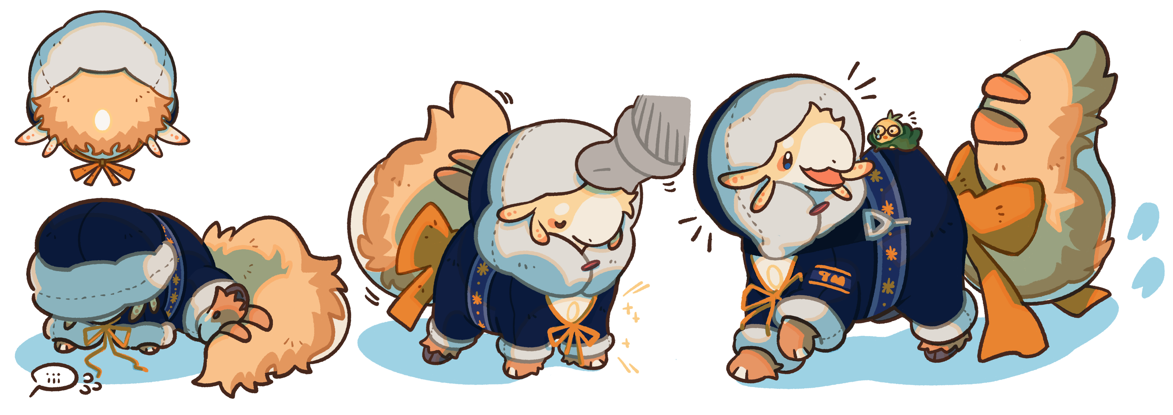 “나는 테이머를 따라서 여기에 살고 있어! 자, 이야기는 모닥불 앞에서 해줄 테니 어서 가자. 오늘은 눈이 아주아주 많이 내리는 날이라 밖은 위험하거든!”