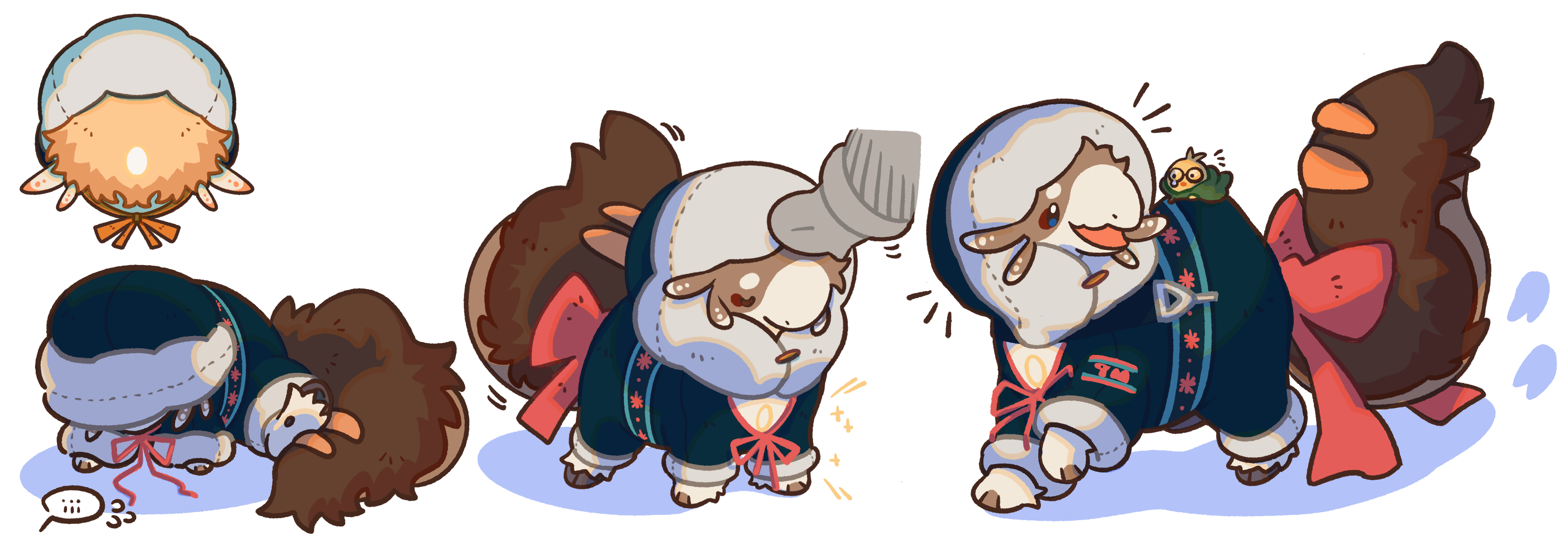스토리는 공식 해츨링 일러스트에 나와있는 병아리를 기반으로 작성하게 되었어요 길 잃은 병아리는 어디로 갔을까? 하다가 설원의 트레버가 구해줘도 재밌겠다! 싶었습니다