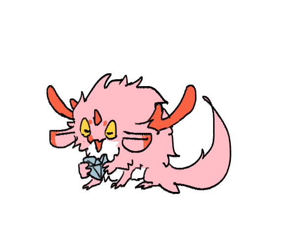 수많은 보석을 먹은 결과로 몸에 보석으로 이루어진 뿔이 자라기 시작한다.
