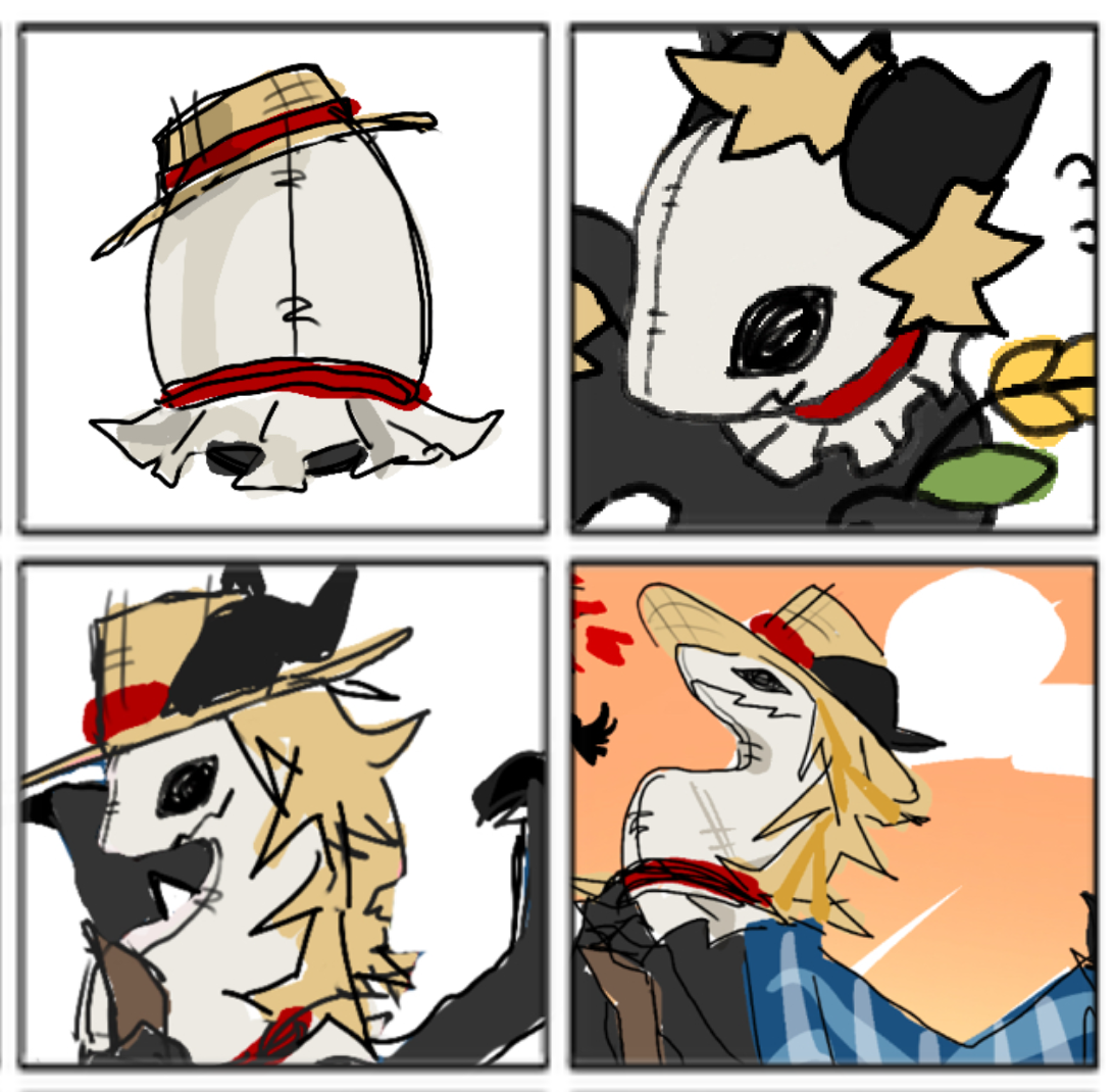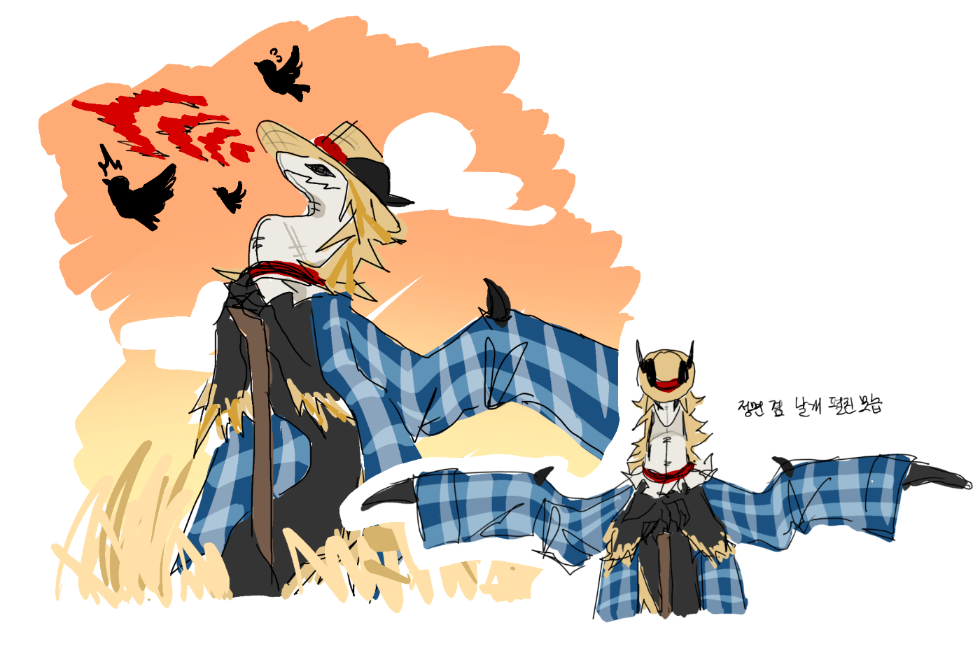 서리꾼은 저 멀리 꽂혀있는 허수아비를 보고선 아무도 없다고 안심하며 잘 자란 작물들을 하나씩 바구니에 챙기기 시작했다.