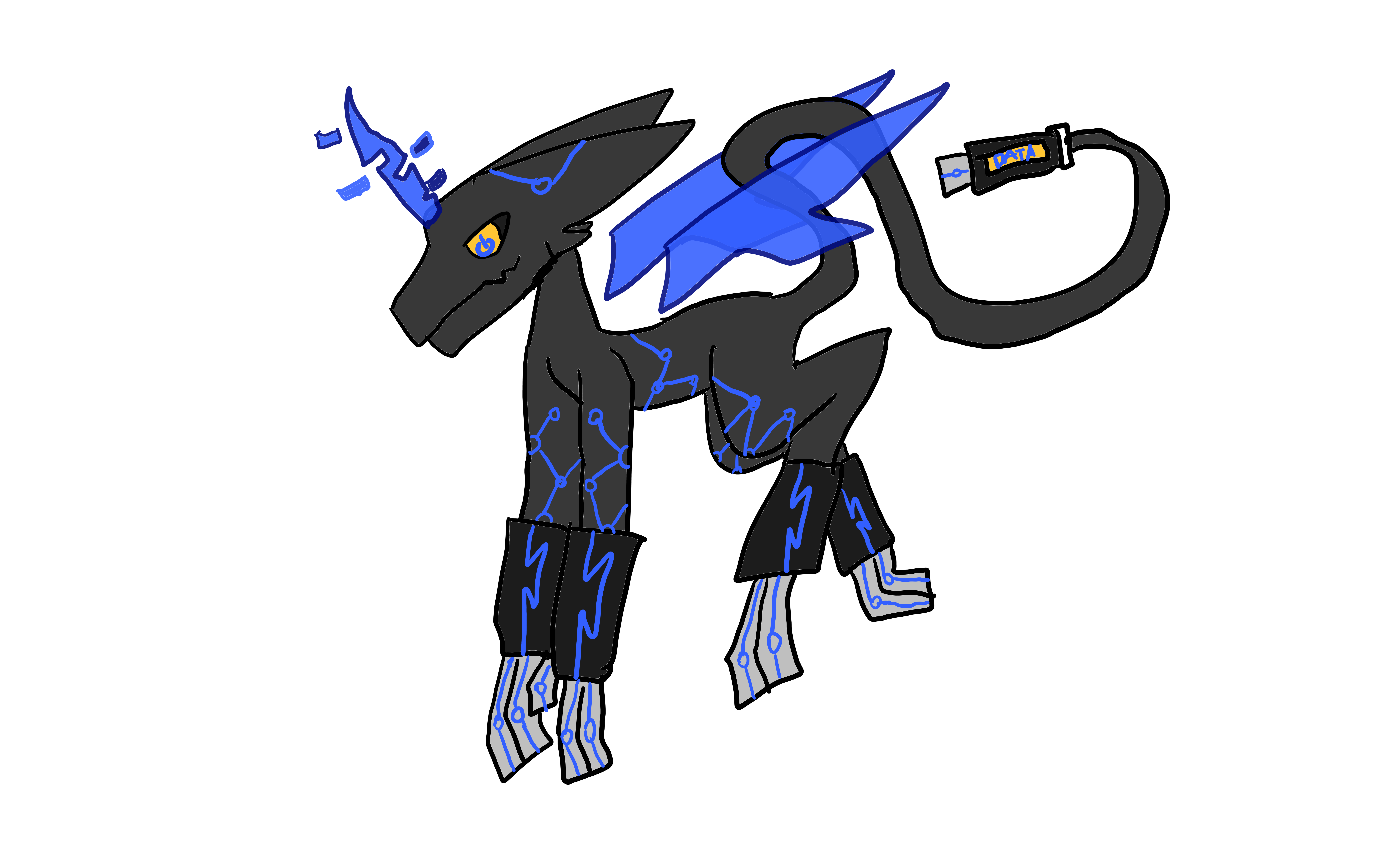 몸에는 무늬가 생겼고 등쪽엔 홀로그램 날개가 떠 있다.