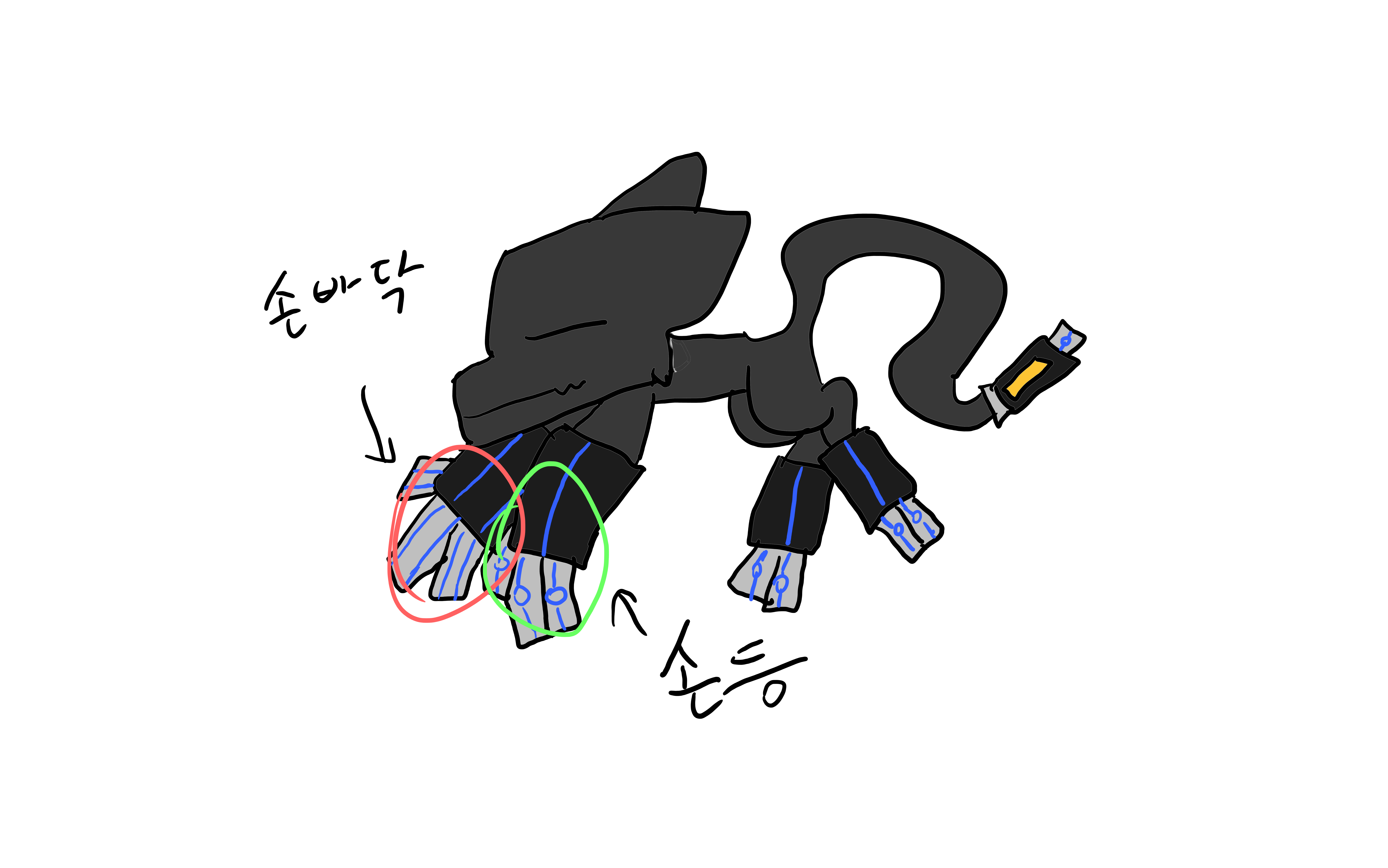 해치 그림에서 줄?이 2개인 부분은 손바닥입니다