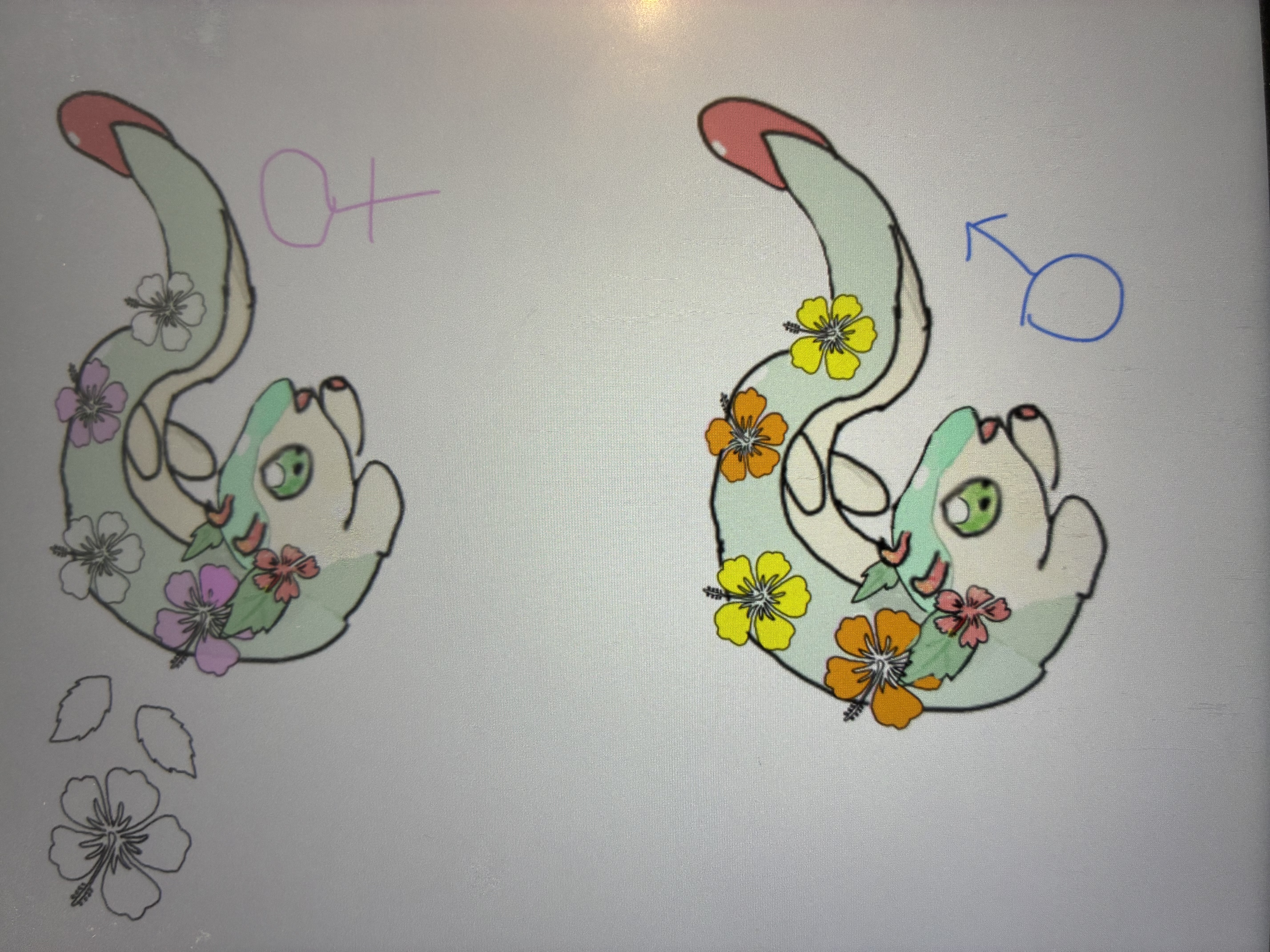 背中に咲いた花は1日で枯れてしまうが、新しく咲くたびにまた違う美しさを持つ。ただ尻尾の花は別でアレイアが自分から取らない限りは取れず、枯れることもない。
