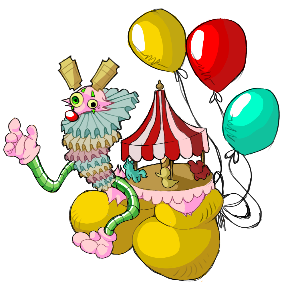 Circus-a-lot has a funny, grandeur, and dramatic character. It's always looking forward to perform, play, and party. It enjoys fair foods such as popcorn, fries, corn dogs–And much, much more! It enjoys snooping around and jumping out at other dragons for kicks and giggles. Although a fun dragon to be around, Circus-a-lot is often unaware if its pranks are going too far. Oftentimes it must be told to be more careful. Despite this, Circus-a-lot is always looking to make new friends and have a great time!