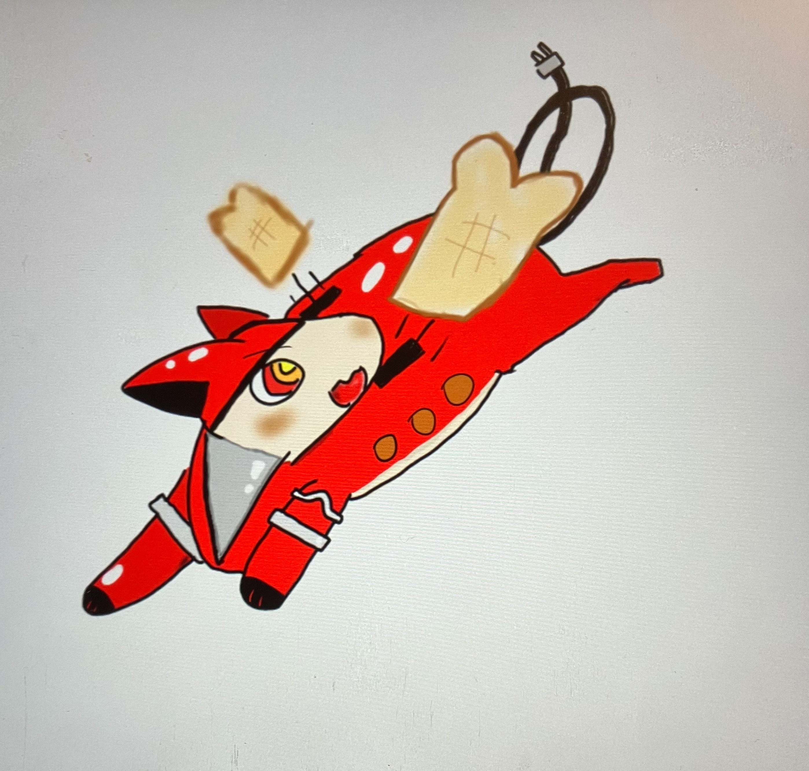 電気要素が少ないかと思ったので、足の輪(焼く時の網のようなもの)にΩの形を入れ、頭にVのマークをつけました。