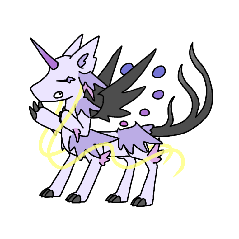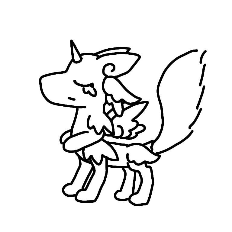 最初はこんなデザインでした。ここから吉夢の外見や悪夢の外見に派生しました。個人的にはこのもふもふの尻尾が好きです(*^^*)