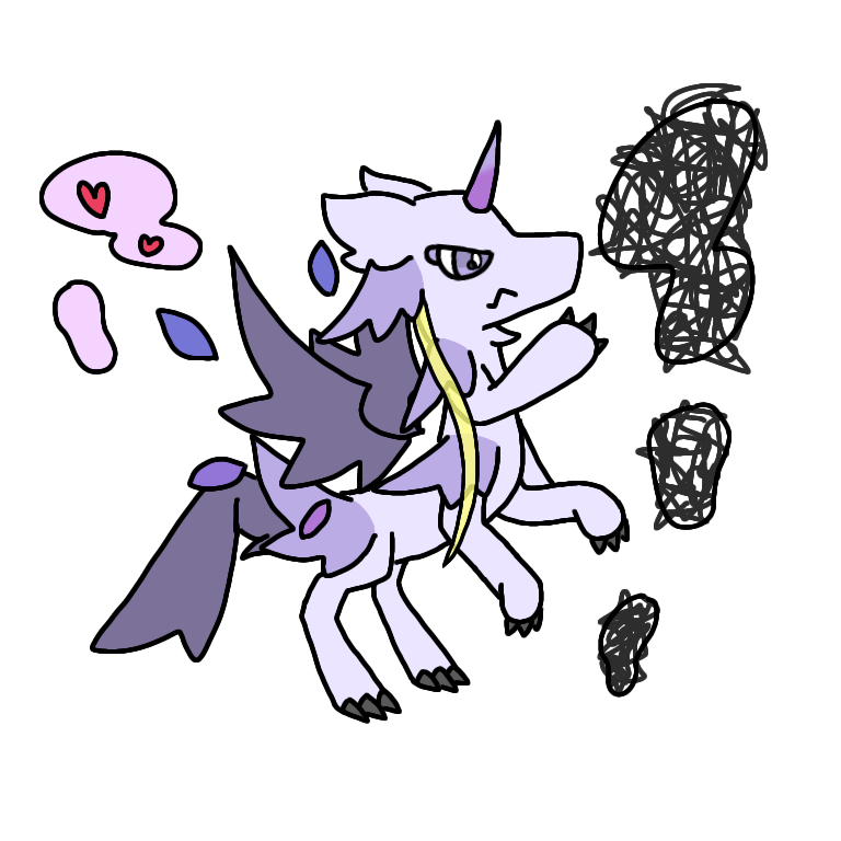 耳は伏せた状態です。例えるなら猫のイカ耳に似ています。翼と尻尾は負の感情を吸収して黒く染まっていきます。