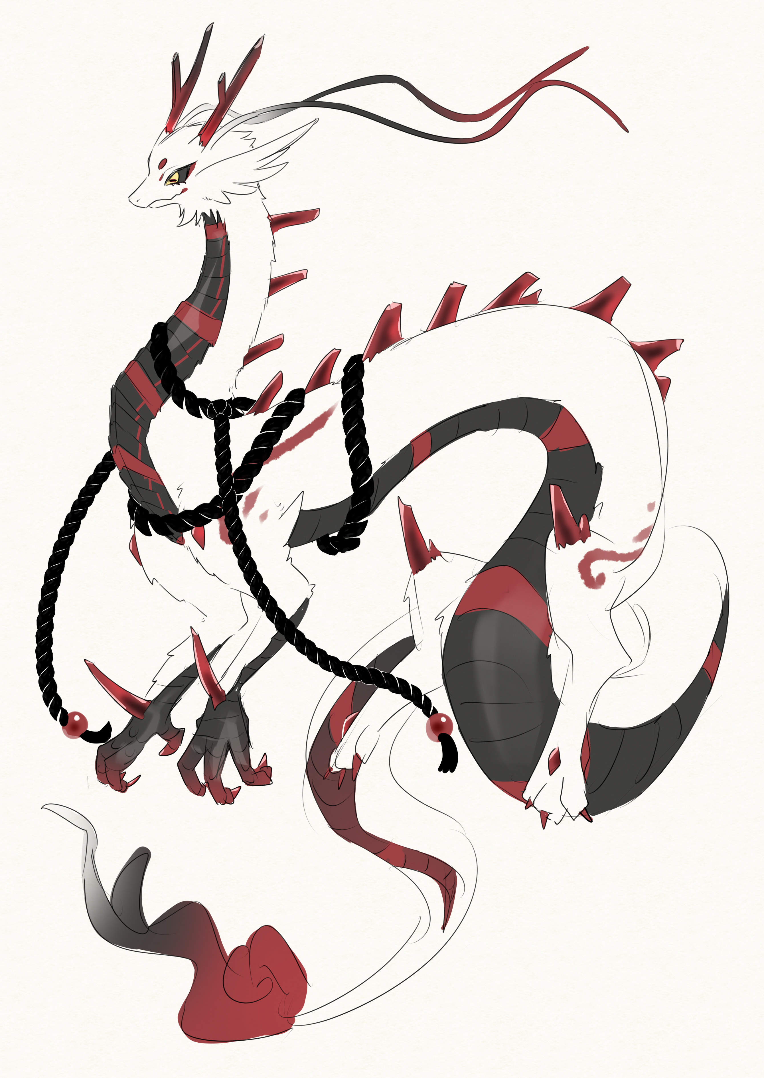 すると、縄が触れた部分からドラゴンの体が黒く、赤く、まるで侵食されるように禍々しい色に変色していきました。