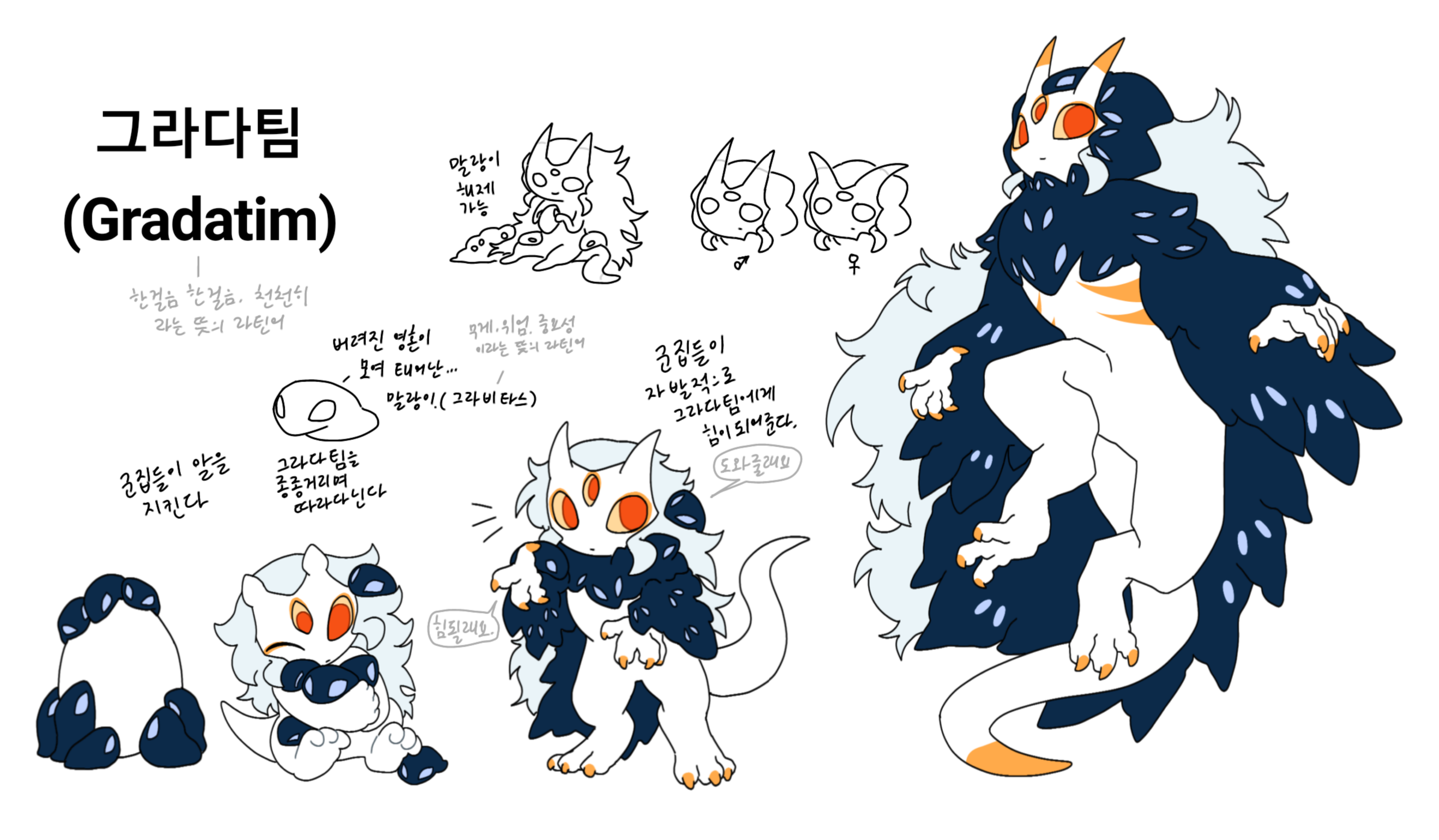 그라다팀은 매우 차분하며 온화한 성질의 드래곤이다.