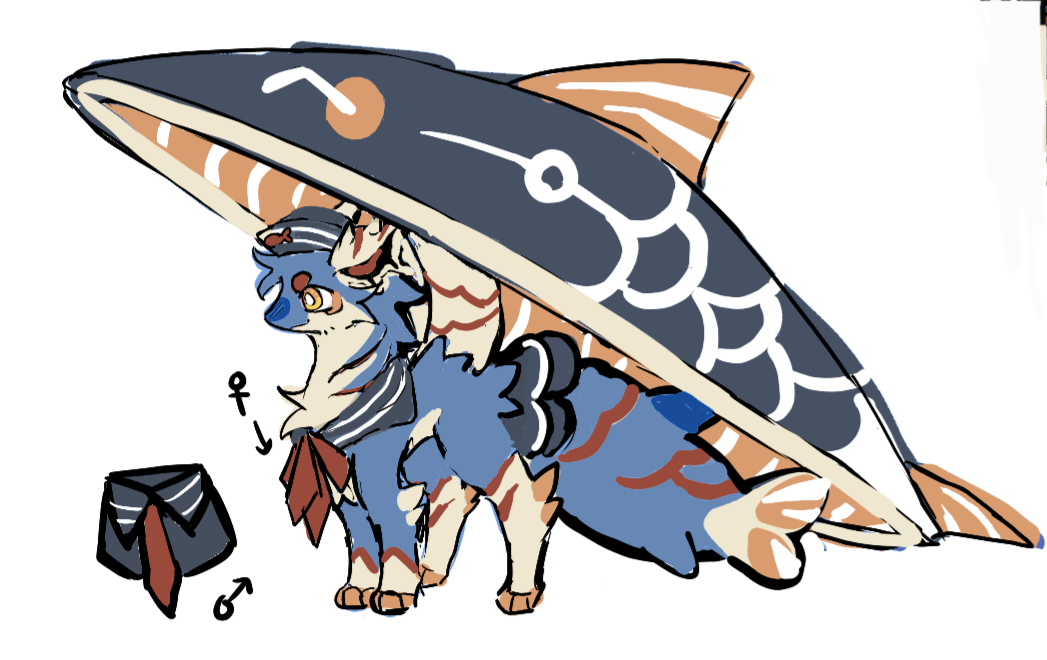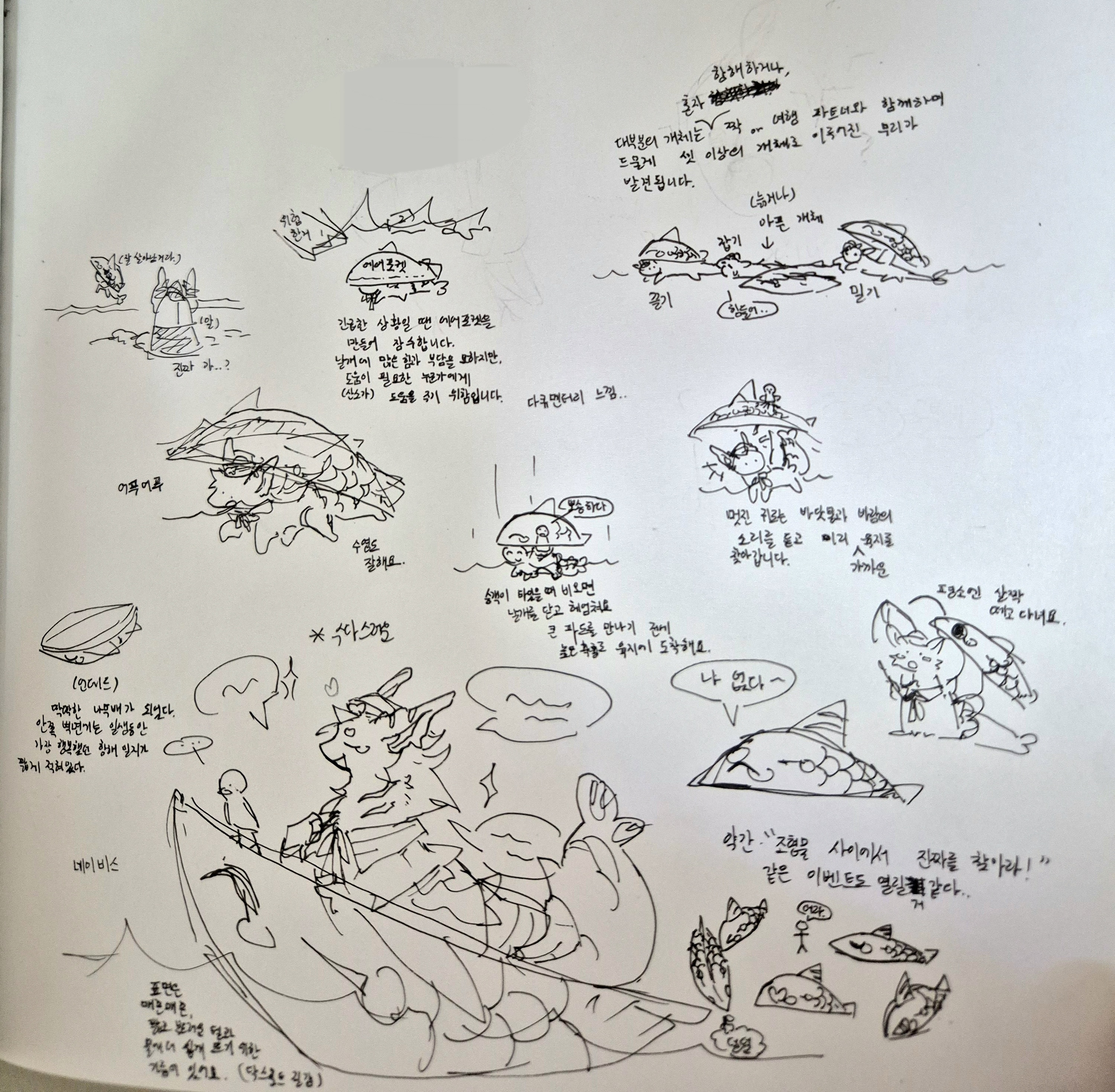 네이비스의 모티브를 적자면.. 낚시할때 나오는.. 제일 좋은 물고기?? 상어?? 철갑상어?? 아무튼 그런 친구×배×특수한 날개×꿈을 위해 끊임없이 하는 노력…정도를 담아보았습니다!