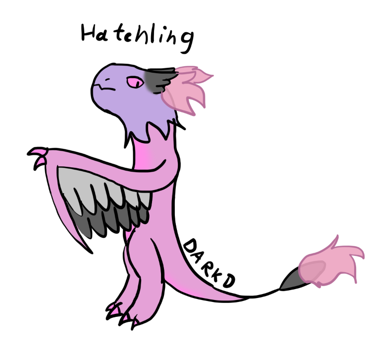 Adults feathers on head, tail and wings are dark grey and are burning extremely hot light pink fire. The Burning Feather Dragon can control its fire power.