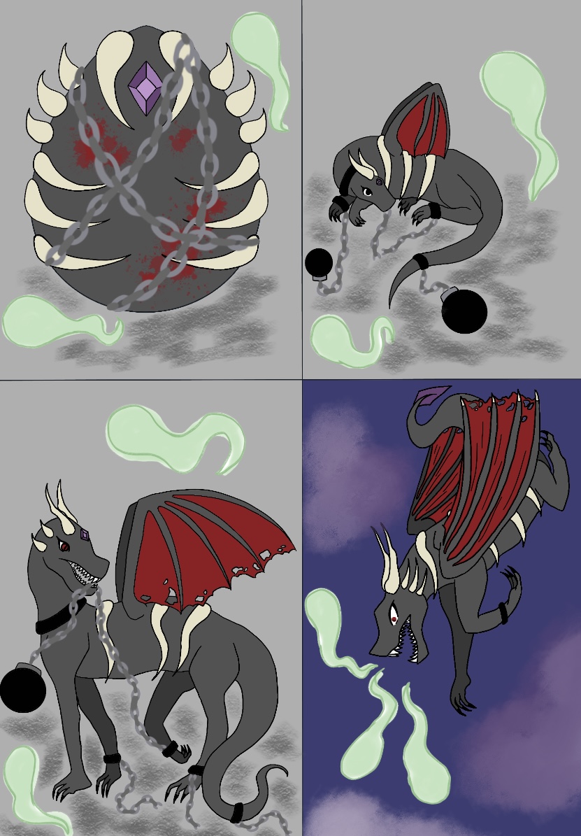 알의 보석은 이마로 옮겨가고 찢어진 날개가 있다. 사슬에 묶인채 혼들의 감시 속에 살아가며 점점 희망이 사라진다. 강해져서 자유를 만끽하고 싶어한다.