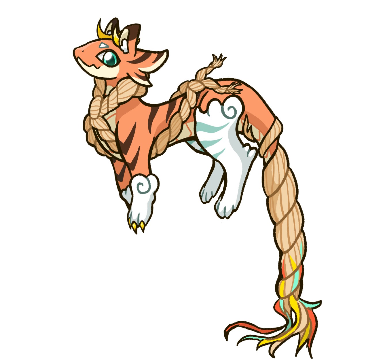 부화한 해치는 호랑이를 연상시키는 외형을 타고나며, 꼬리에 동아줄이 감겨져 있다. 꼬리의 동아줄은 무슨 짓을 해도 꼬리에서 떨어지지 않는다. 볏짚을 먹어서 꼬리의 동아줄의 길이를 늘리기 때문에 볏짚을 찾아다닌다.