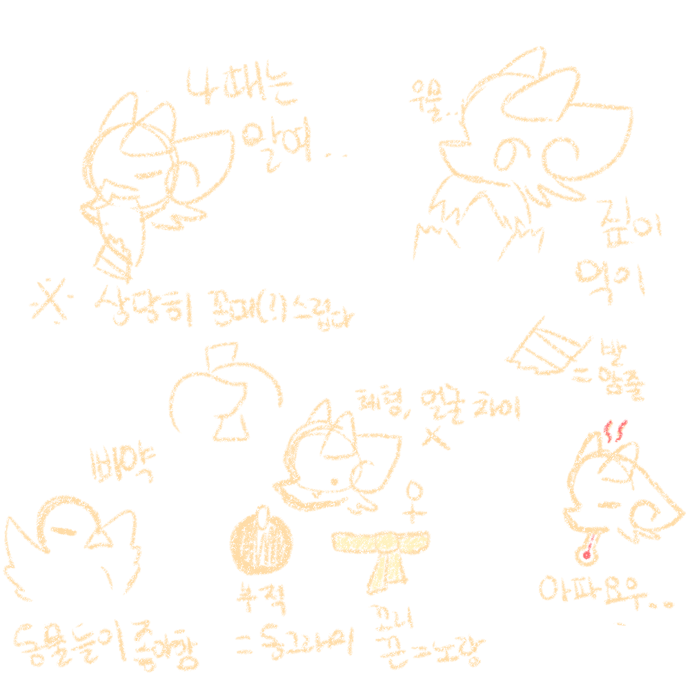 꼬리가 길어 결려 자주 넘어진다. 아직 힘이 세진 않지만, 아이들과 줄을 당기며 장난치기도 한다. 가끔 농사하는것을 조용히 지켜볼때도 있다.