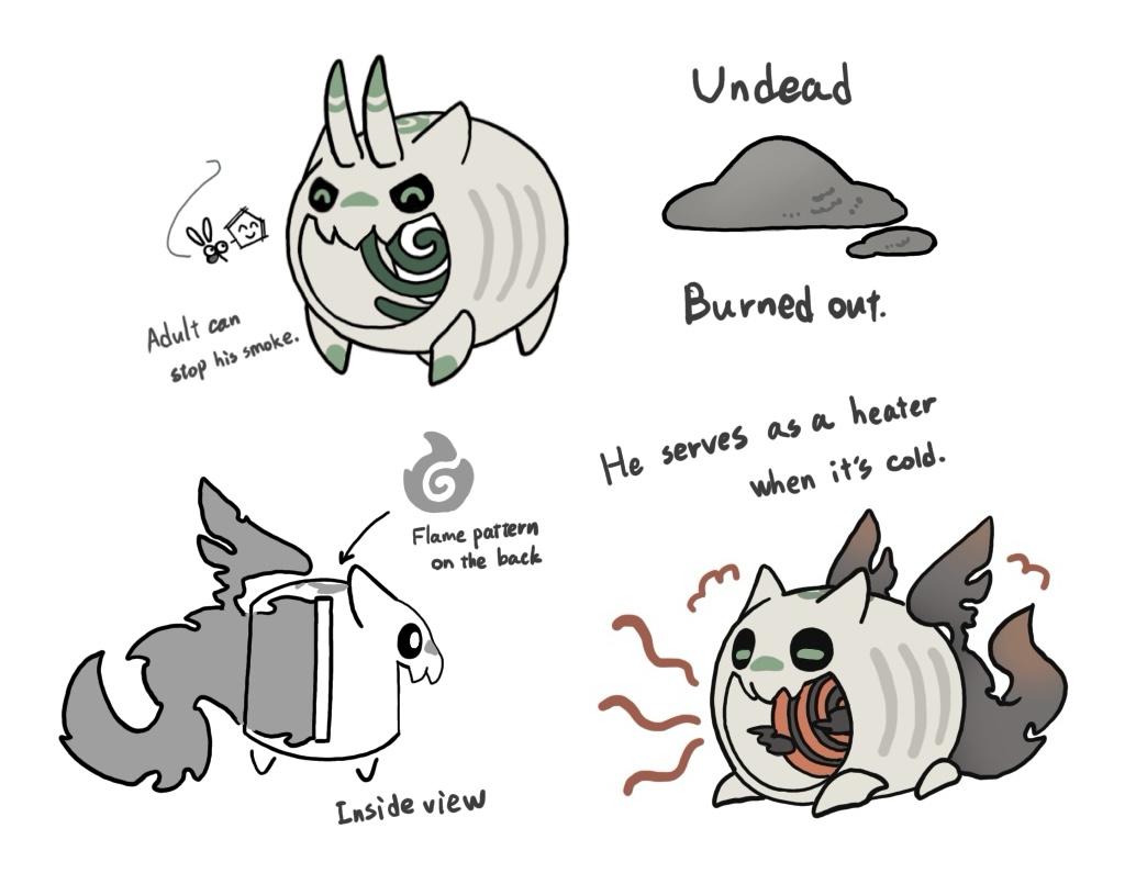 몸의 중심에 있는 열원에서 피어오르는 연기를 마음대로 다룰 수 있으며, 연기로 이루어진 커다란 몸으로 주변을 지킨다.