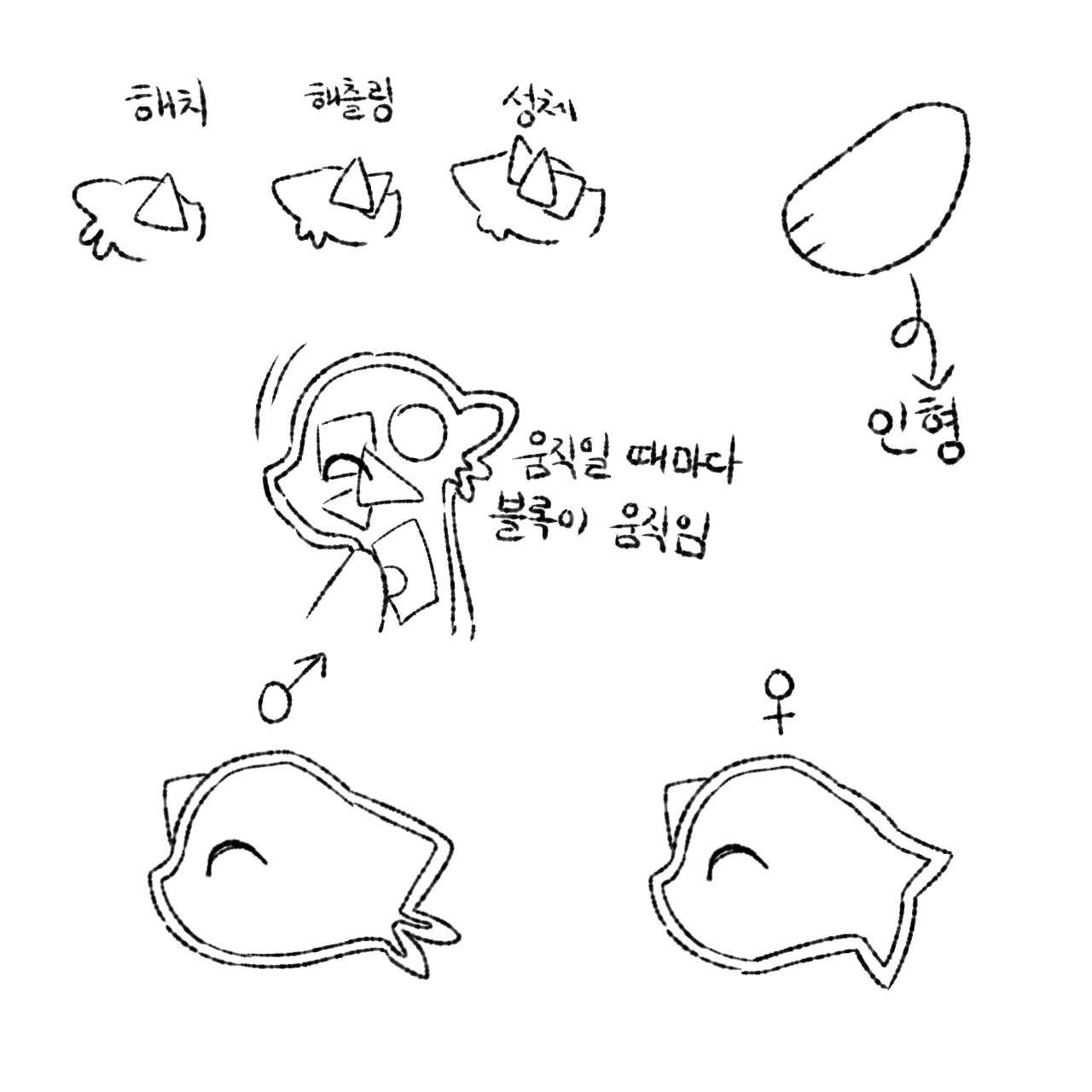 갓 태어난 해치는 자신과 비슷한 크기의 작은 아이들과 노는 것을 좋아하며 자신의 특기인 블록쌓기를 보여주는 것을 좋아한다.