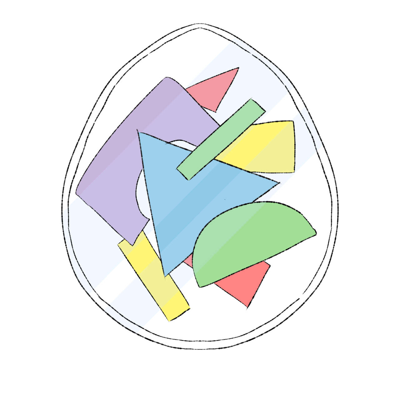 플라스틱 같은 투명한 껍질 안에 여러색색의 귀여운 블록들이 담겨 있다. 알을 흔들게 되면 블록들이 움직이며 달그락 소리를 낸다.