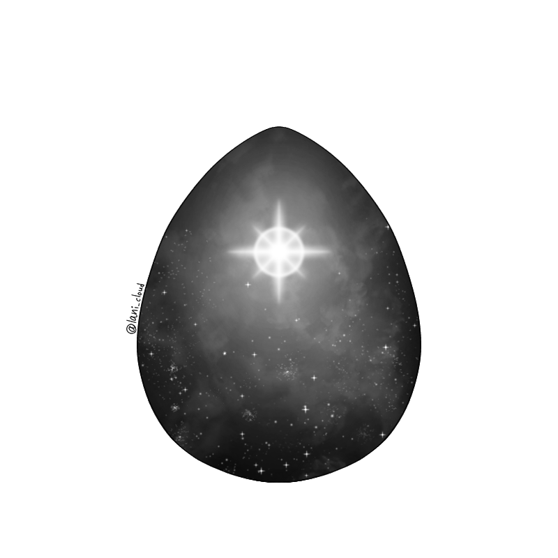 새까맣고 어두운 색의 알이지만 그 속에서 희미하게 빛을 내고 있습니다.