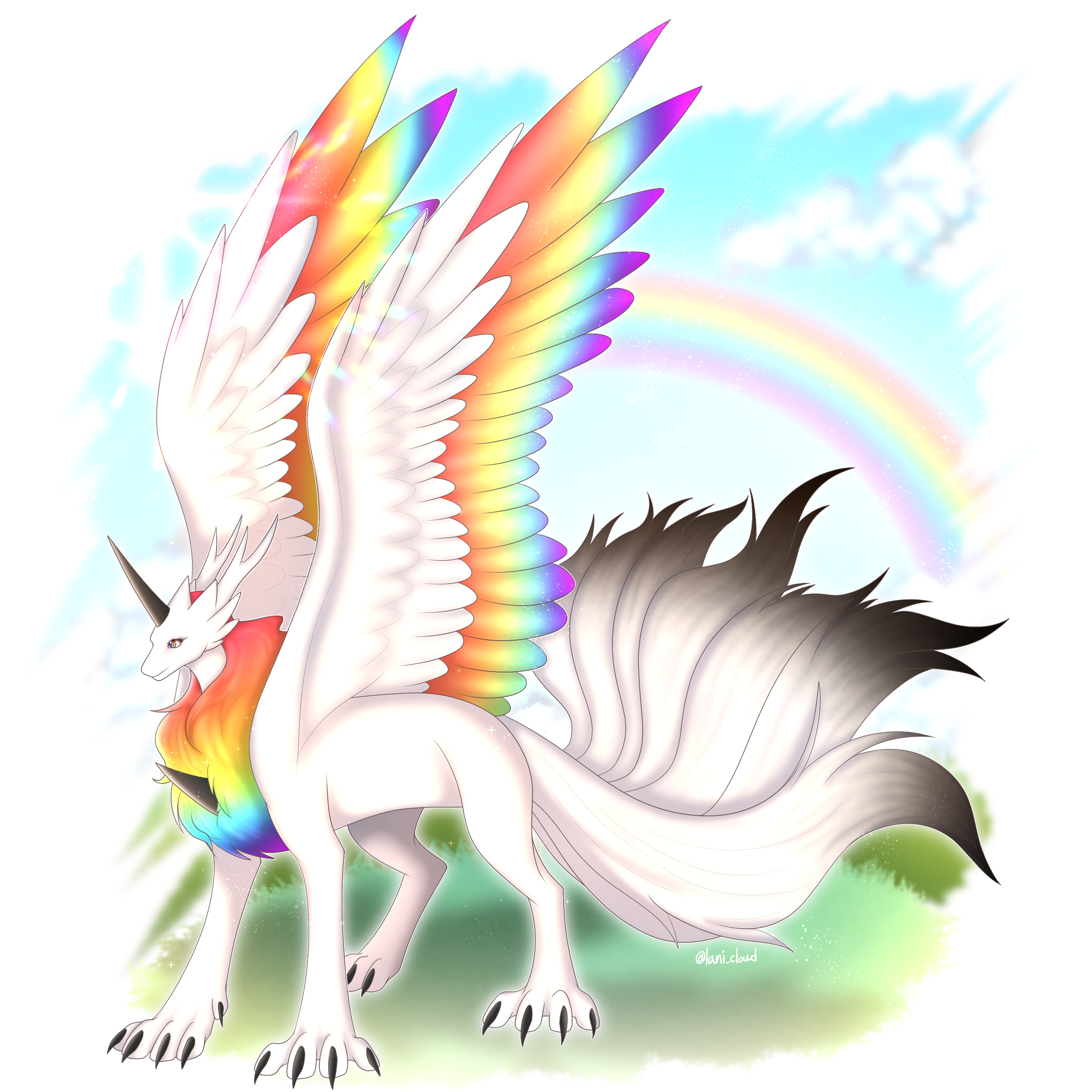 비가 온 뒤에 먹구름이 걷어지면서 나오는 따사로운 햇빛과 함께 아이리스 루키아가 무지개를 띄우며 하늘을 날고 있으며 무지개를 담고 있는 날개를 힘차게 펄럭이면서 희망의 빛을 전해주고 있습니다.