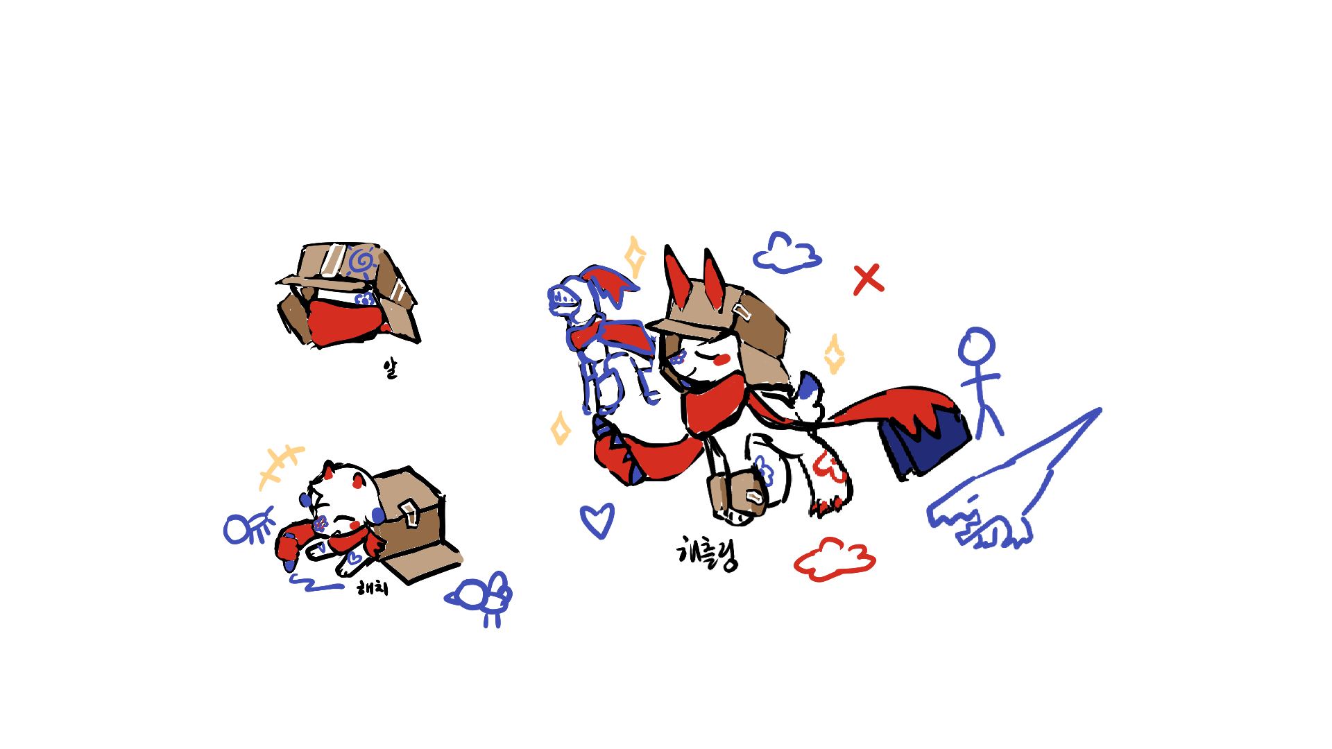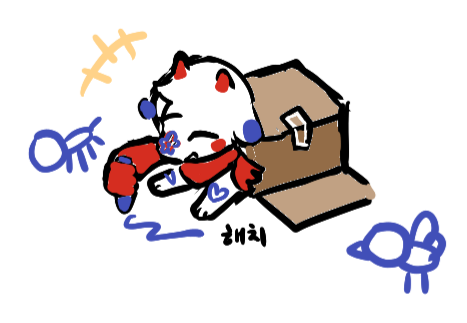 몸에 있는 낙서나 상자에 있는 낙서는 파믈로 스스로가 끄적입니다