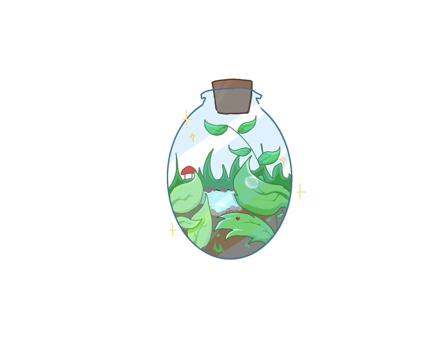 어느 옛날 , 자연에 관심이 많던 어느 한 테이머는 , 자신이 가지고있던 작은 유리병에 흙과 식물 , 약간의 물을 넣어 테라리움을 만들어냈다.