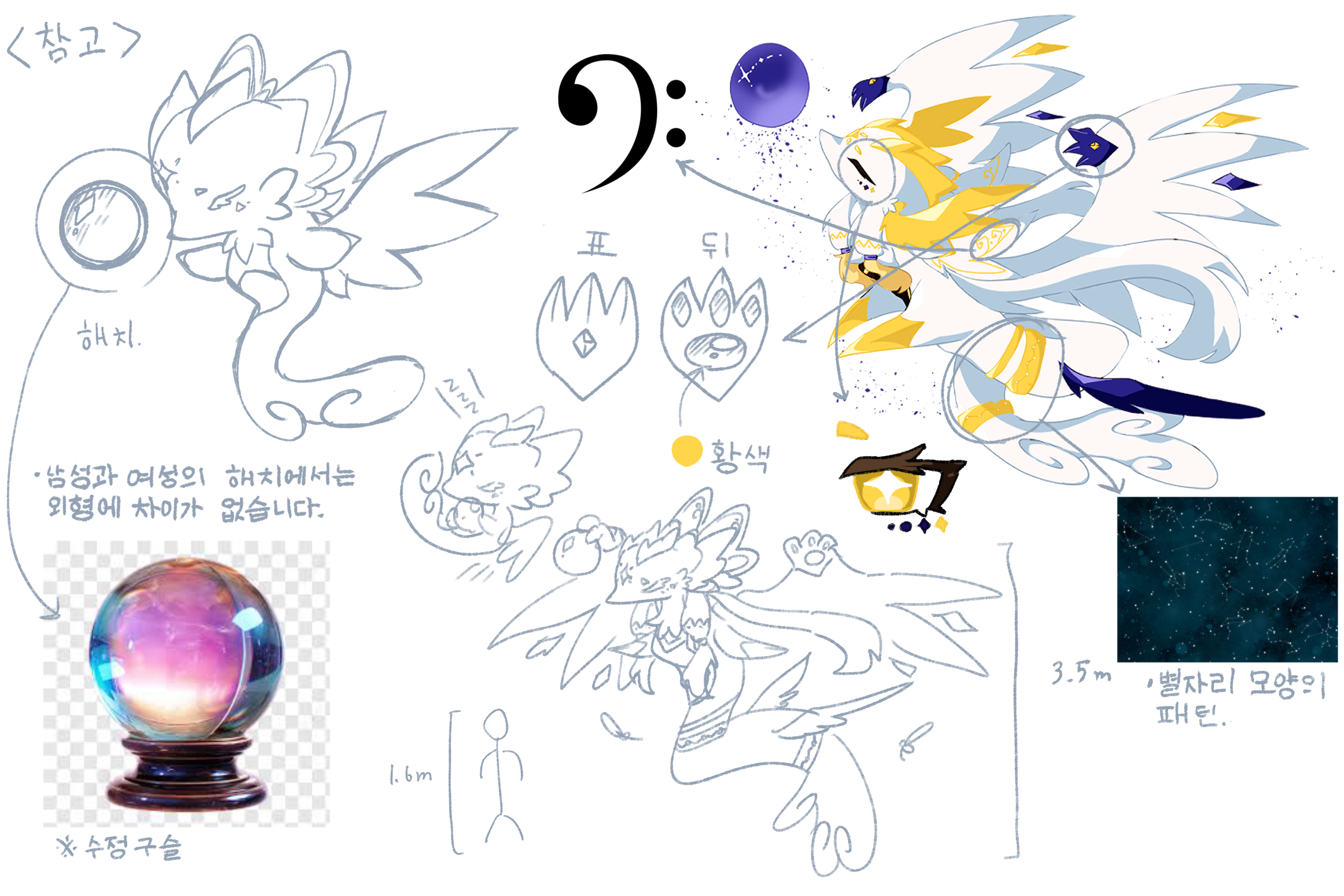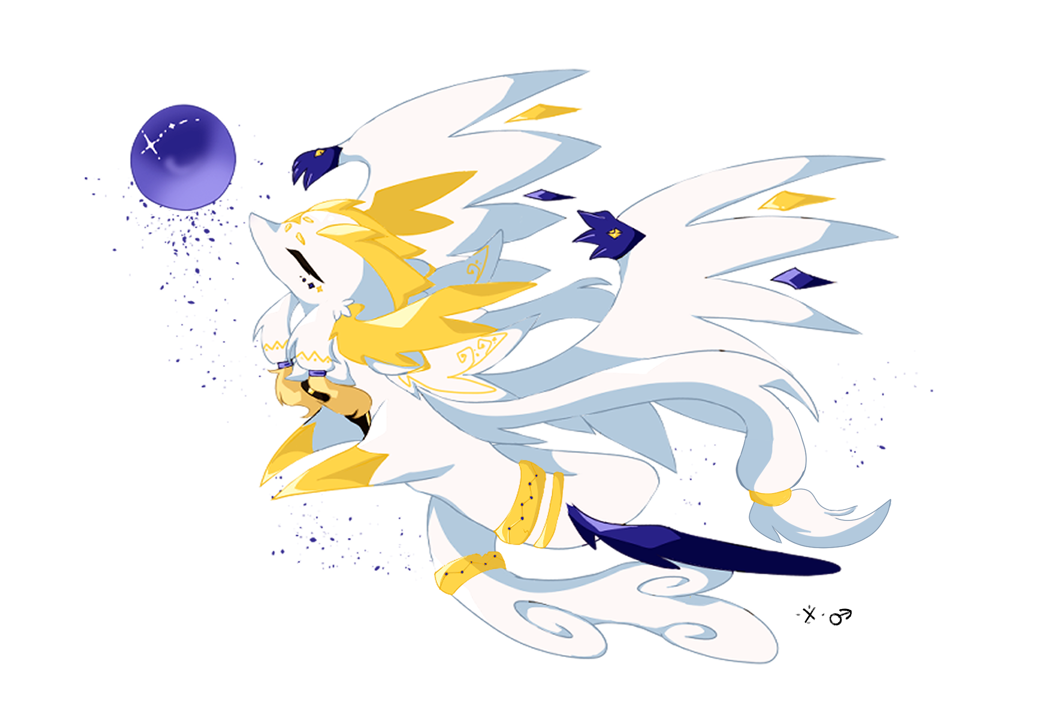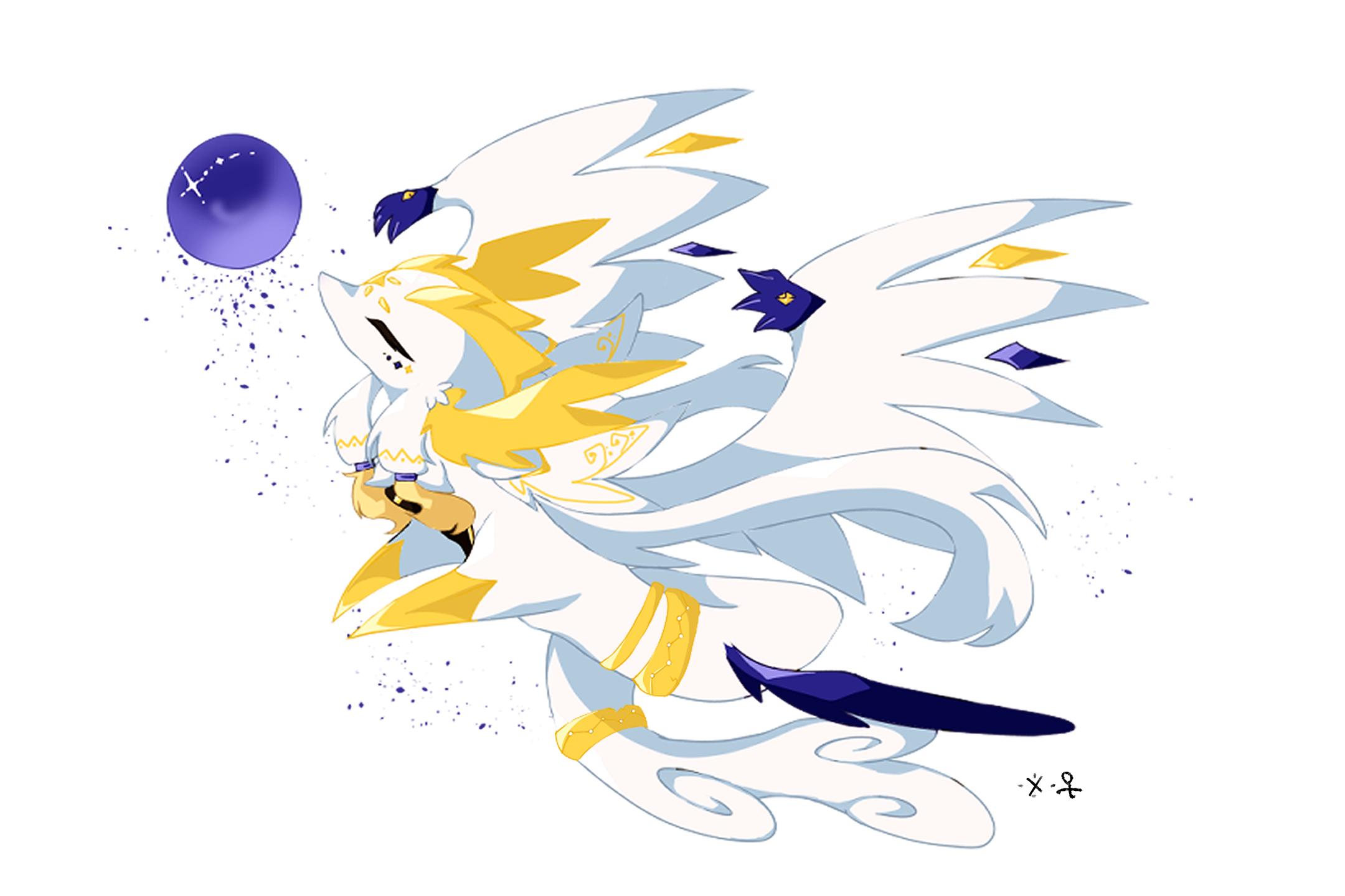 「 大きな羽根で水晶玉を抱えている。」
