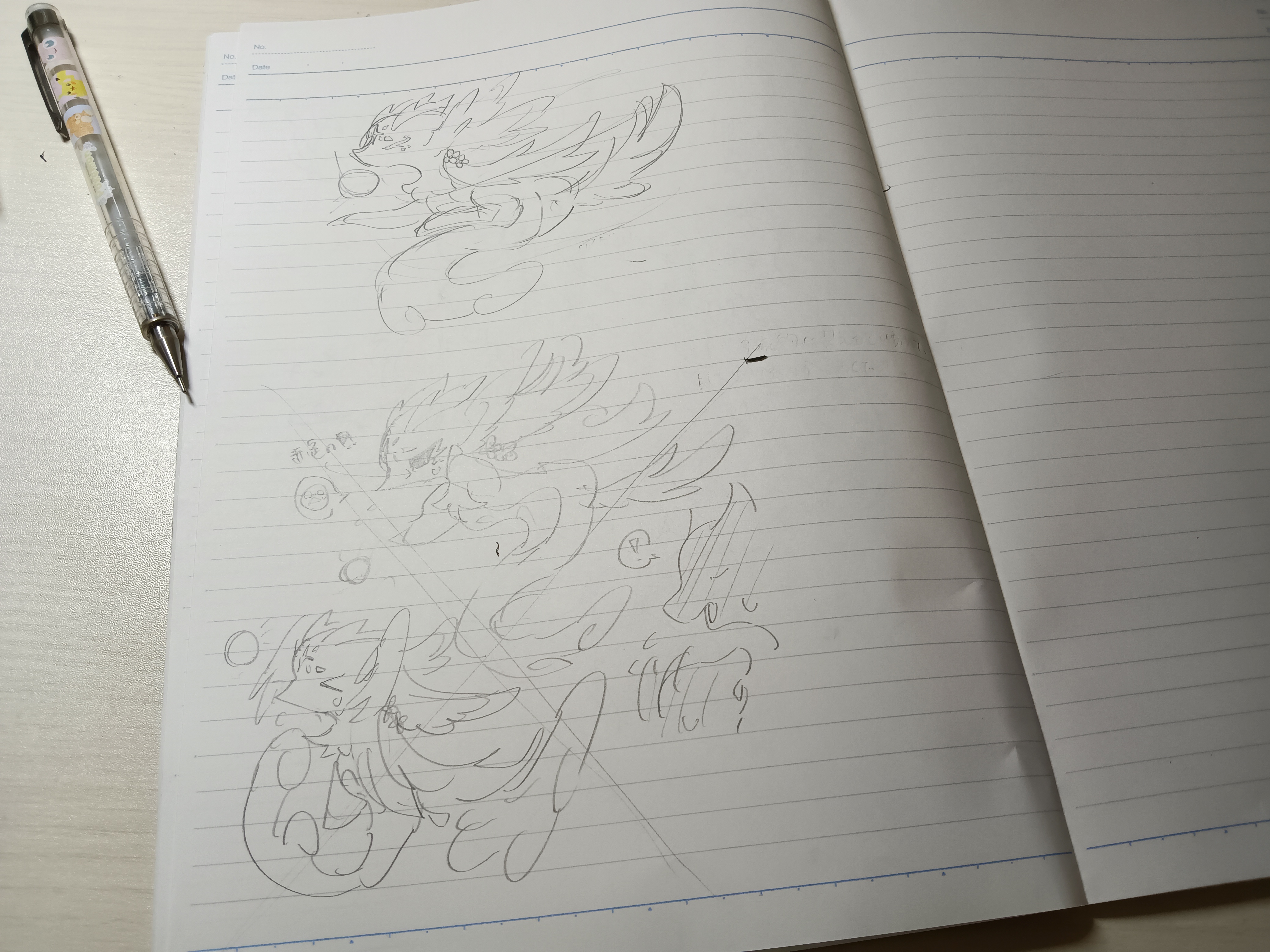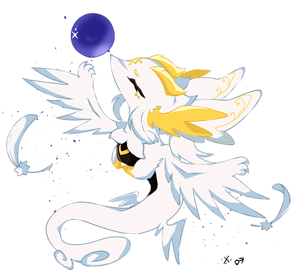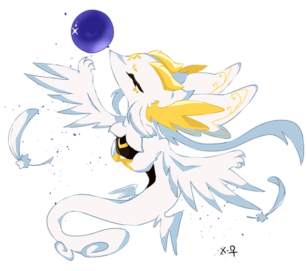 「 大きな羽根で水晶玉を抱えている。」