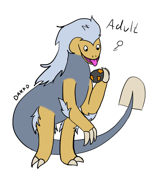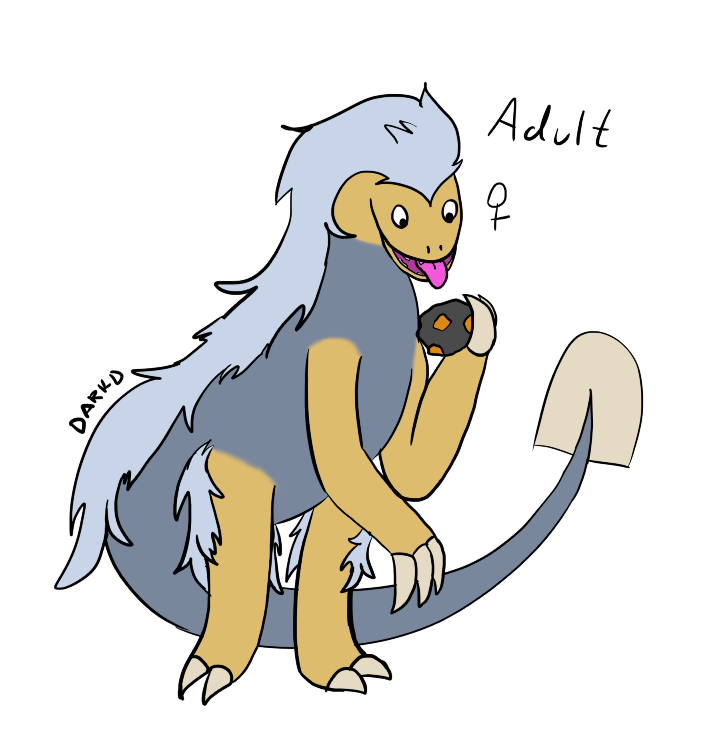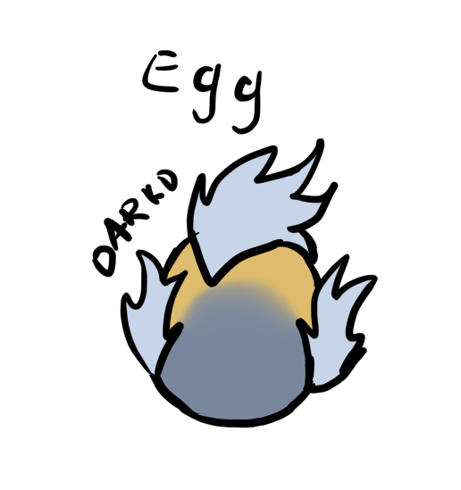 Egg is grey-blue and is colored dark-yellow on front. It has hard grey fur.