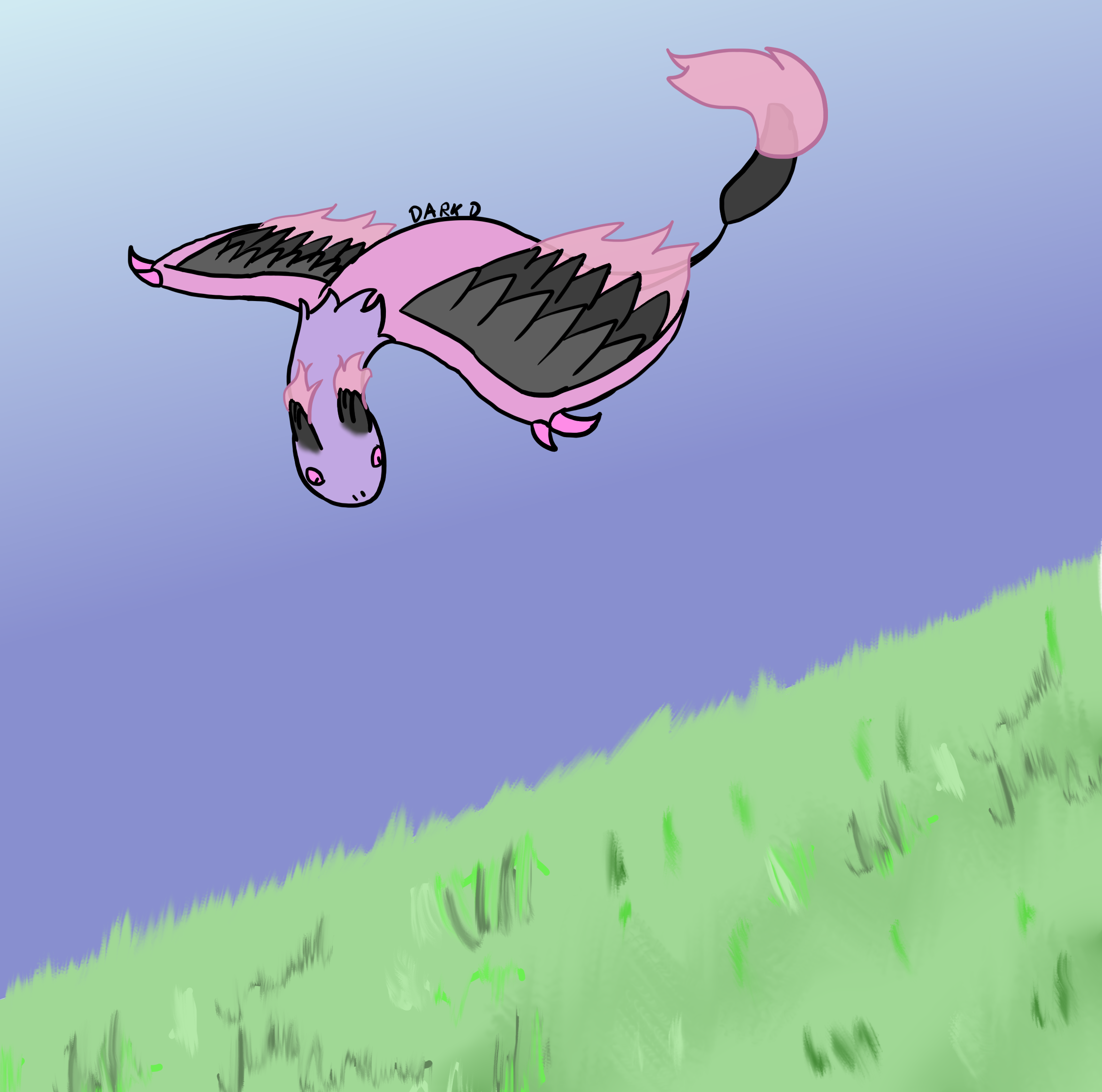 Once Burning Feather Dragon was flying across small town and noticed two dragons, a small one and big one.