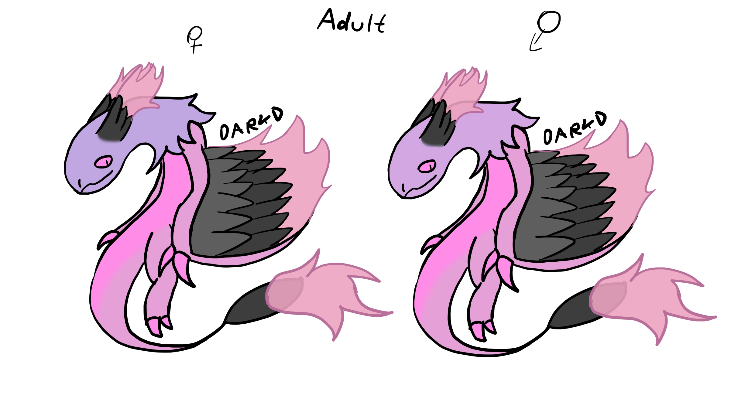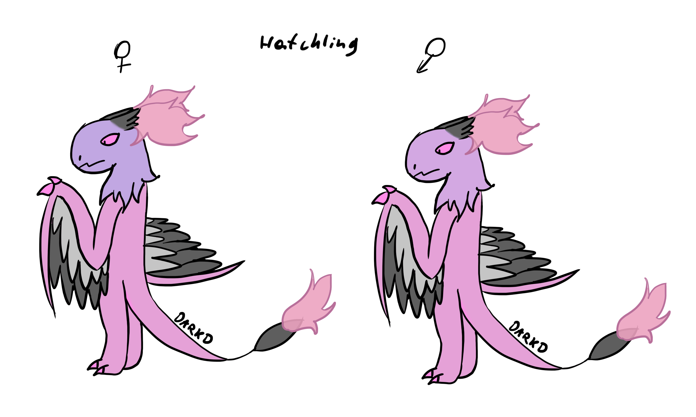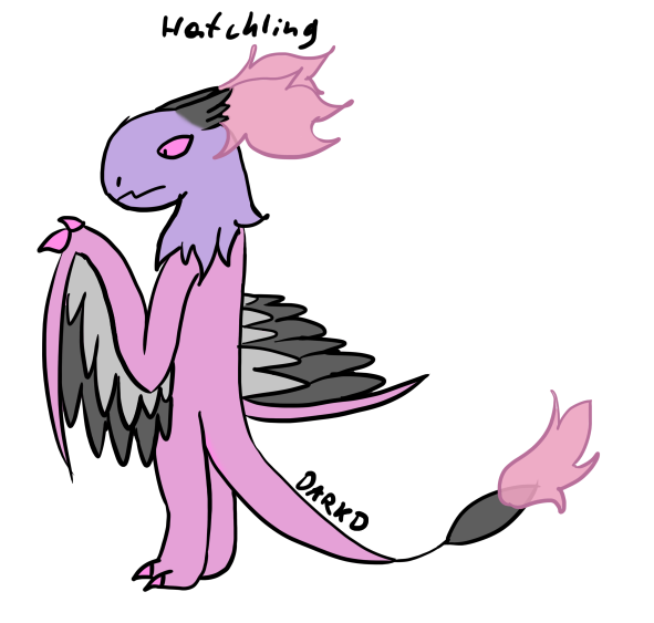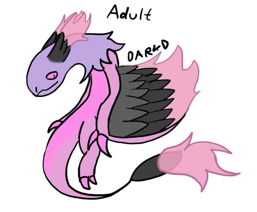 Adults feathers on head, tail and wings are dark grey and are burning extremely hot light pink fire. The Burning Feather Dragon can control its fire power.