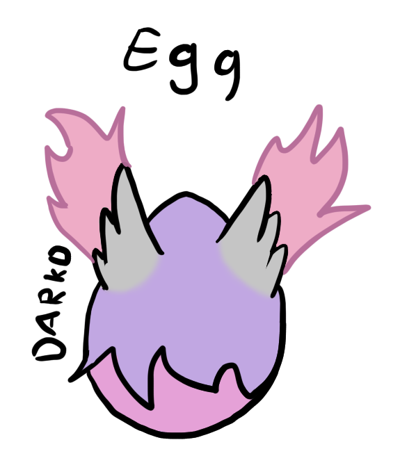 Egg is pink and is covered in purple fur. It has dirty white feathers, which burn with light pink fire.