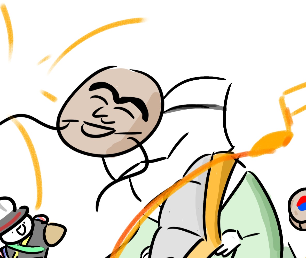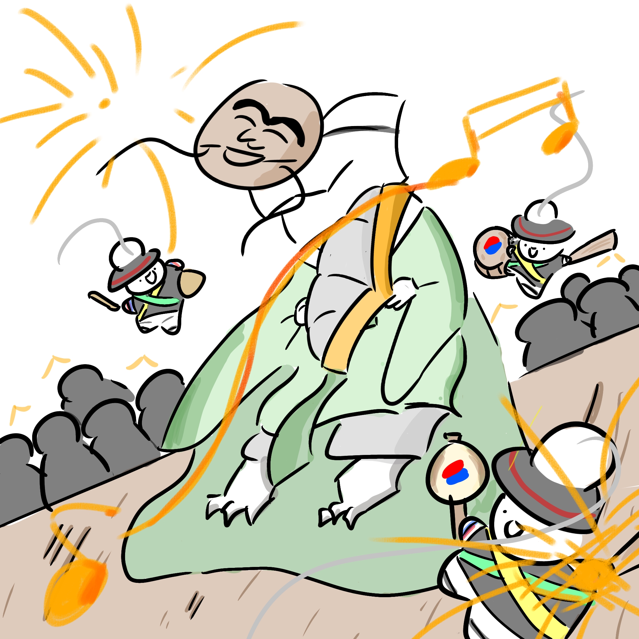 각각 북,꽹가리,소고를 들고있다