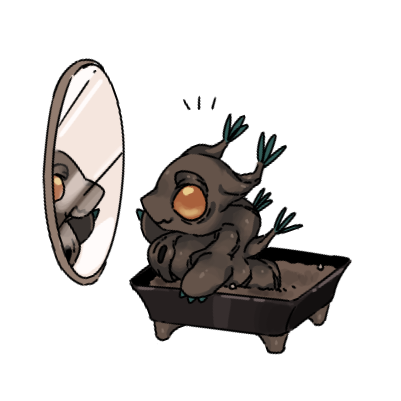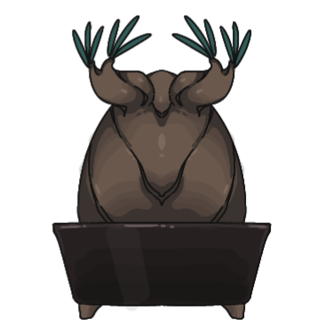화분에 담겨있는 분재같은 알이지만 분재라 하면 떠올리는 생김새에 비하면 몸통이 매우 두껍고 가지와 잎은 수가 적어 특이하게 생겼다.