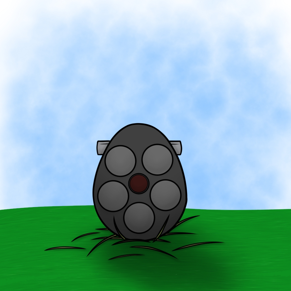 A grey egg, no bigger than a soccer ball. The camera lens in the middle seems to react to changes in light, preferring darker areas.