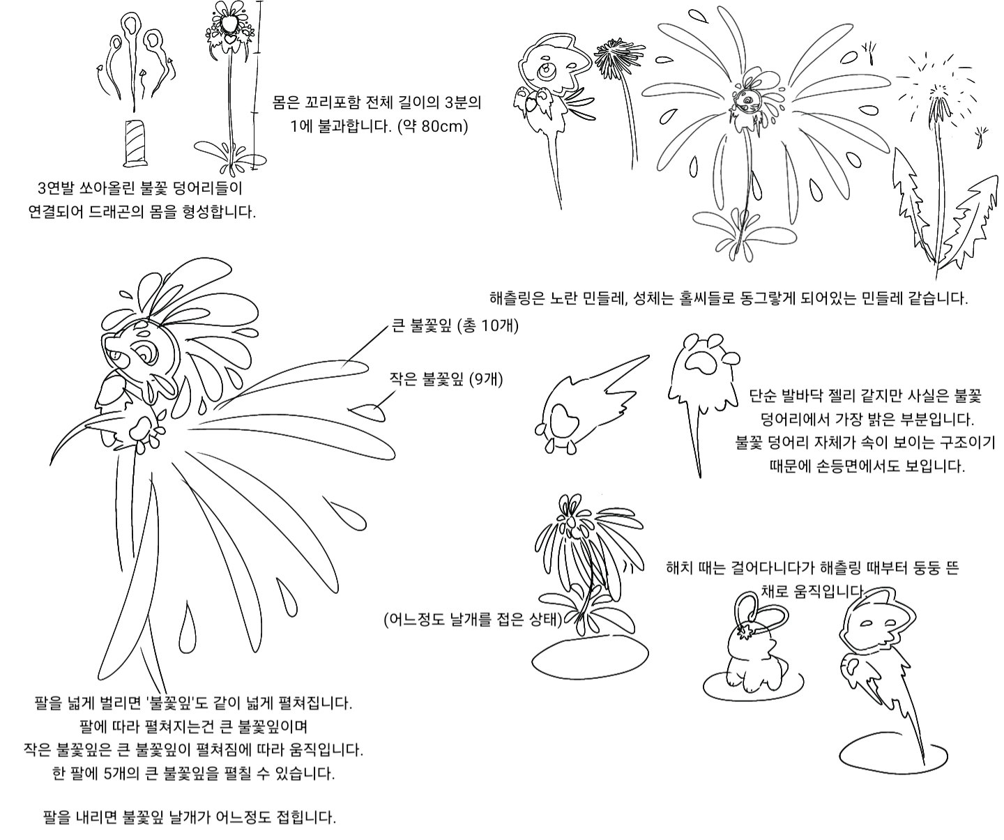 해츨링 등에 달린 것도 불꽃잎이며 해츨링 드래곤이 펼쳤다가 접는 걸 조절할 수 있습니다. 해츨링 등에 달린 불꽃잎의 수는 8개입니다.