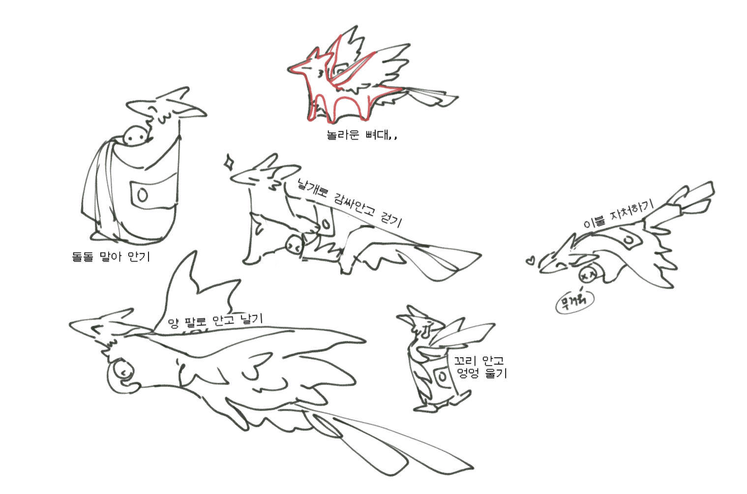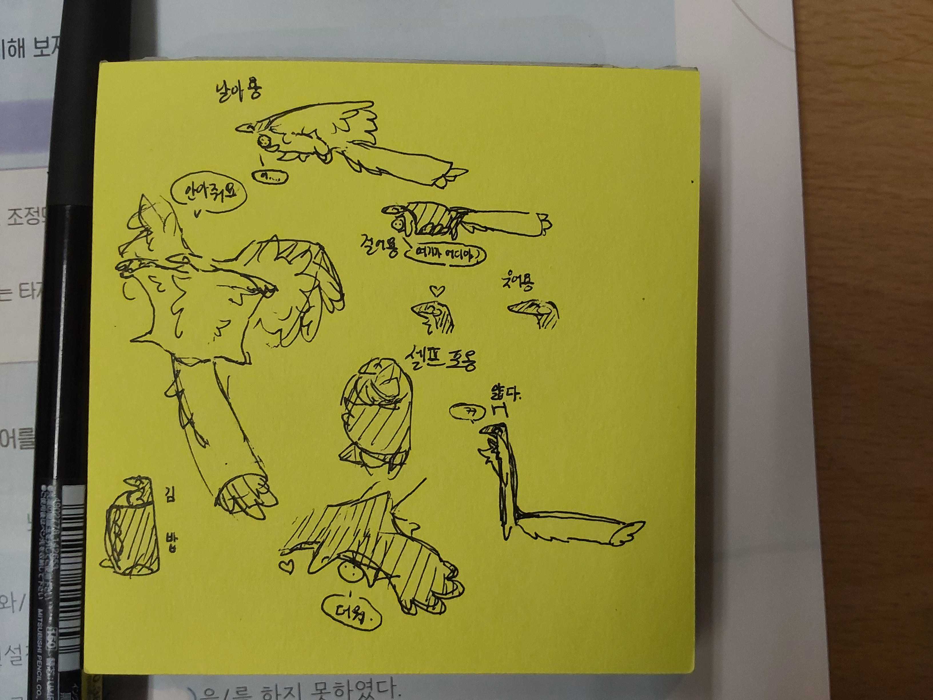 날개 안쪽이나 무튼,, 그런 하얀 털 부분을 부각해서 그린 이유는…….. 밥풀같아지자! 였지만… 성공했는지는 모르겠네요. TwT