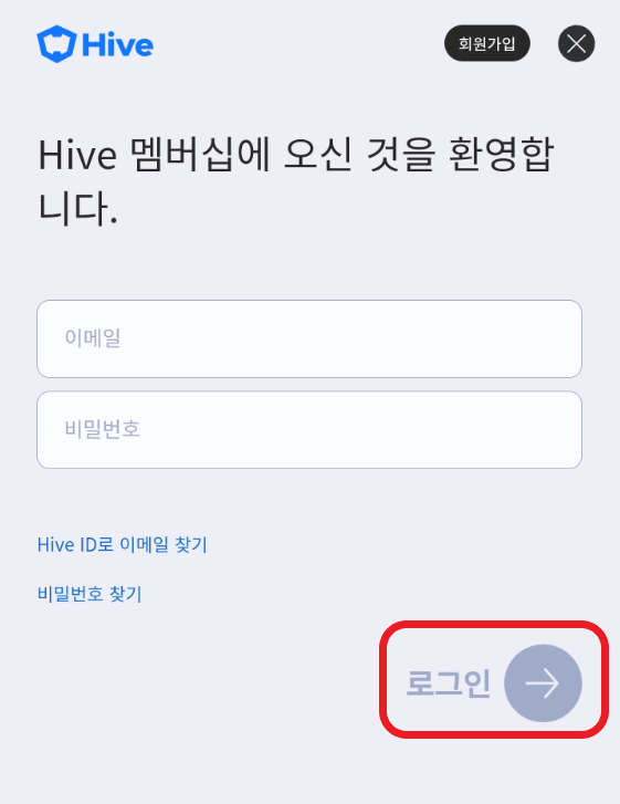 ▶ Hive 계정으로 게임 로그인 하는 방법