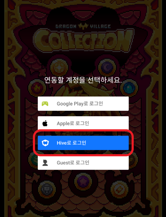 - 드래곤빌리지 컬렉션 접속 → [Hive로 로그인] 터치