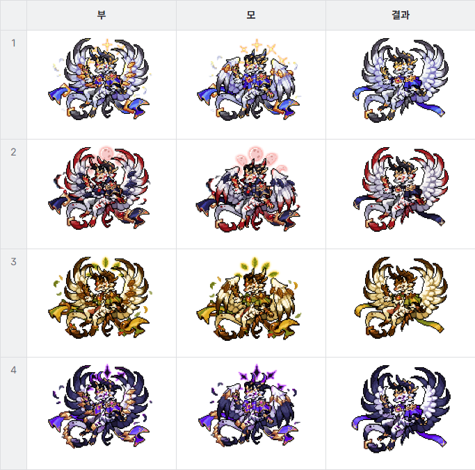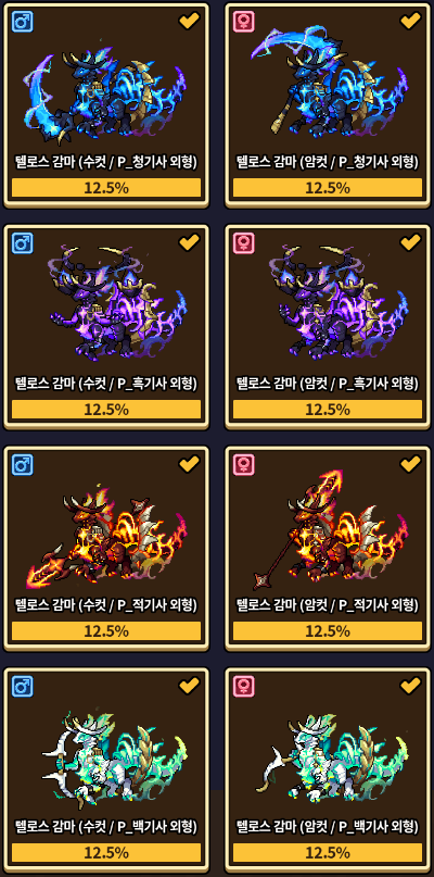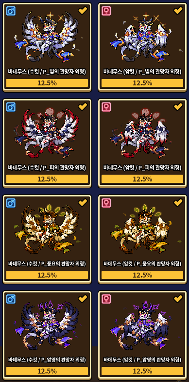 다음의 외형은 교배를 통하여 획득하실 수 있으며 거래가 가능합니다.
