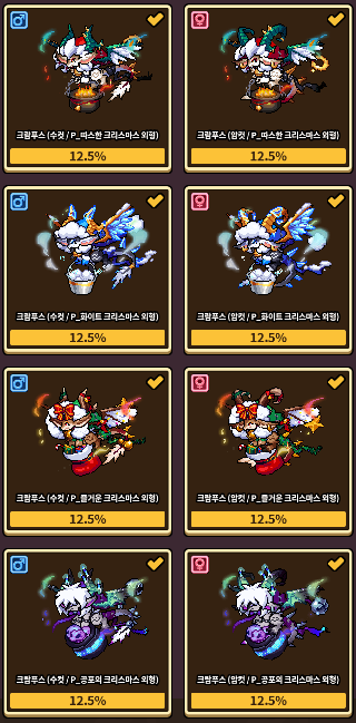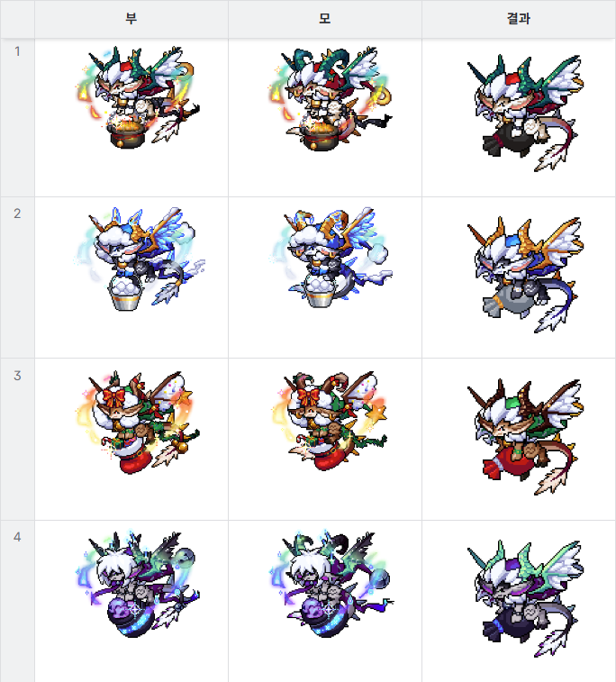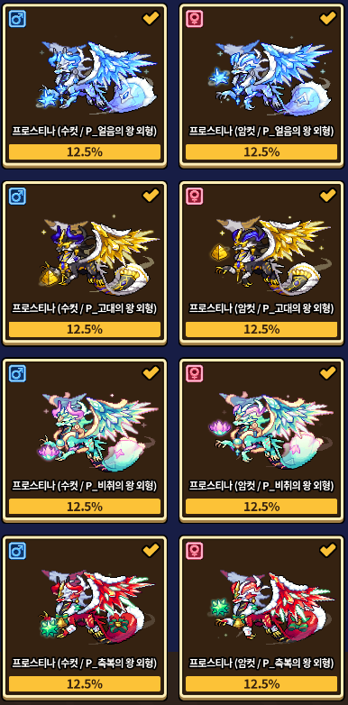 다음의 외형은 교배를 통하여 획득하실 수 있으며 거래가 가능합니다.