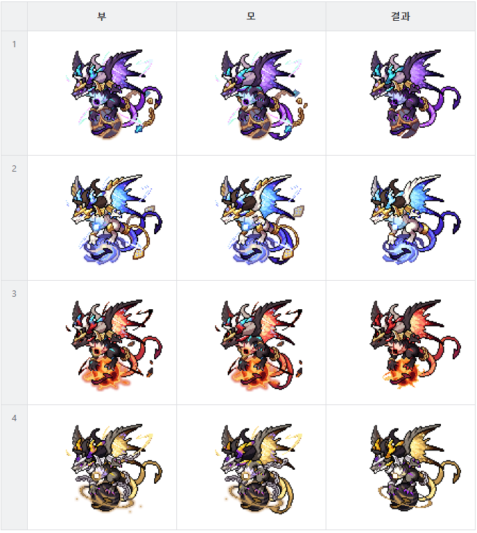 * 전용 교배 공식은 위에 설명된 것과 같이, 모두 동일 외형 교배시에만 해당하는 점 참고 바랍니다.
