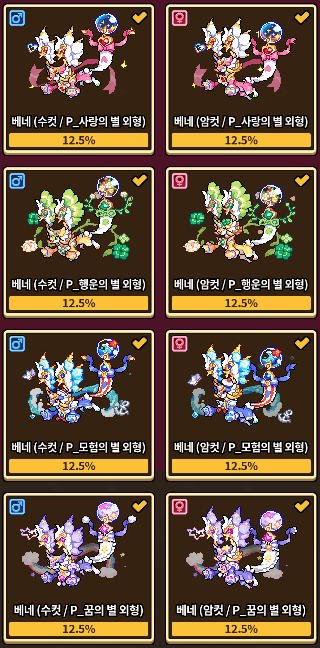 특수 외형은 이달의 알을 통해서만 획득하실 수 있으며 각 외형은 아래와 같습니다.