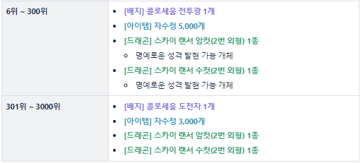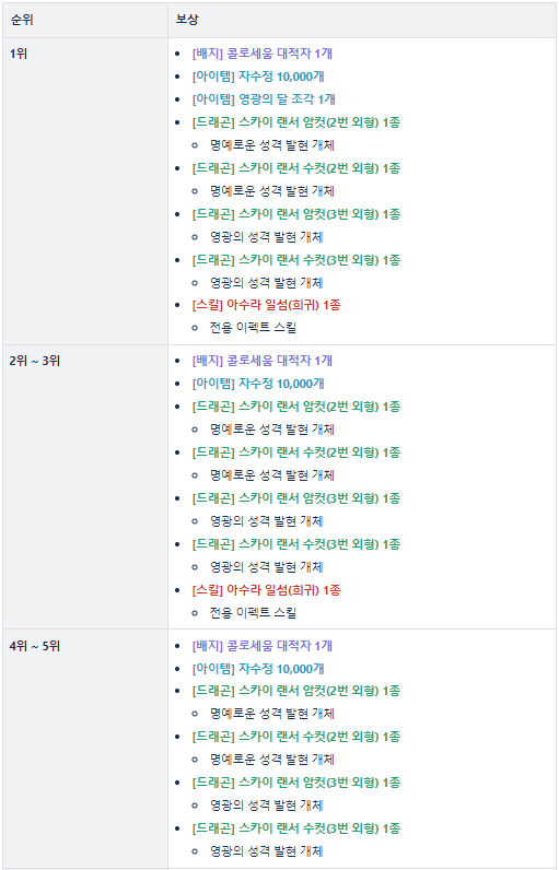 - 랭킹 보상은 리그 종료 후 휴식 기간 동안 지급됩니다.