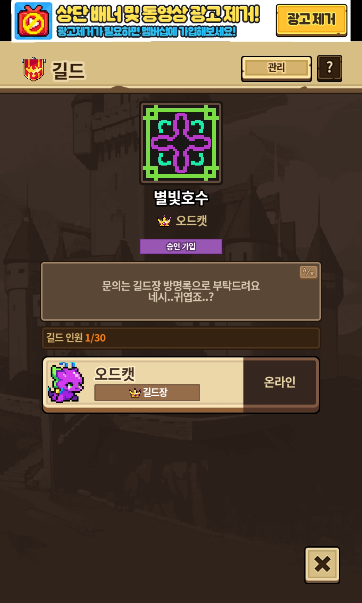 자유로운 길드가 목표가 때문에 들어와서 아무것도 안 하셔도 되고