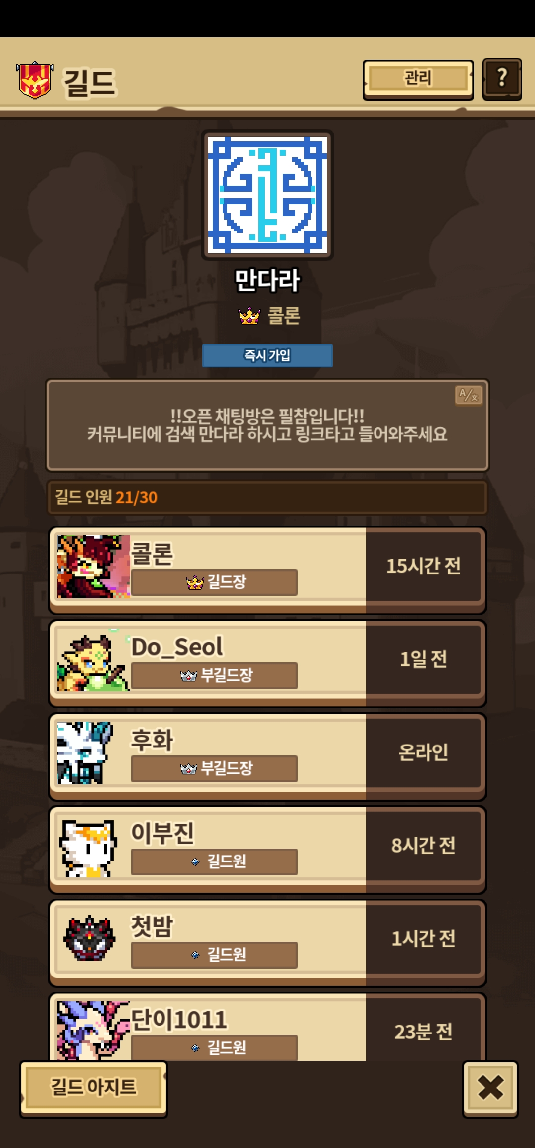 [만다라] 길드에서 길드원 모집합니다!! (21/30)
