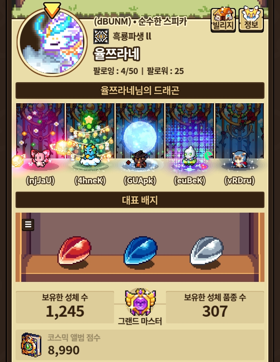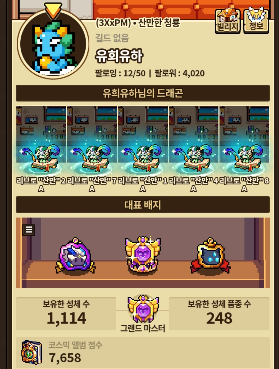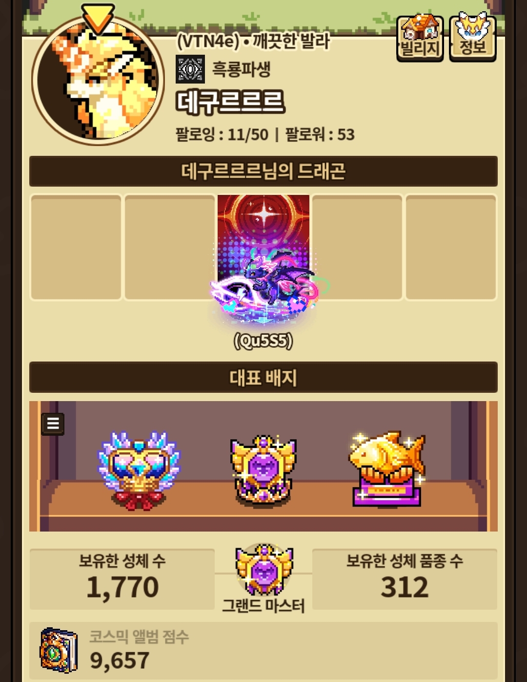 성체 수는 데구르르르님 다음 가는 성체 수 1200마리를 달성하신 그랜드 마스터 유저 이십니다.