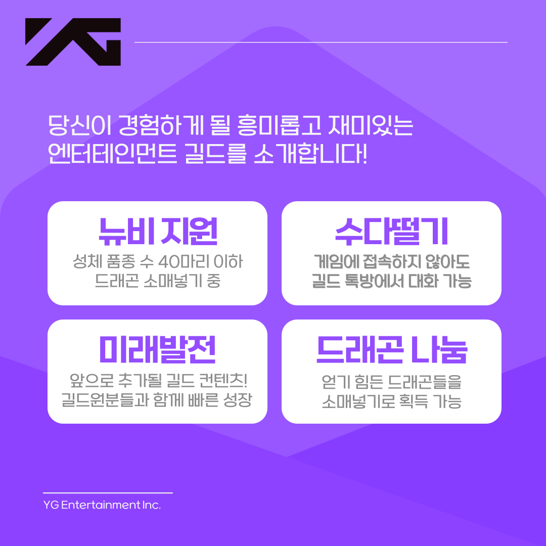YG엔터테인먼트에서 길드원을 모집합니다~!! 많은 관심 부탁드립니다~!!!