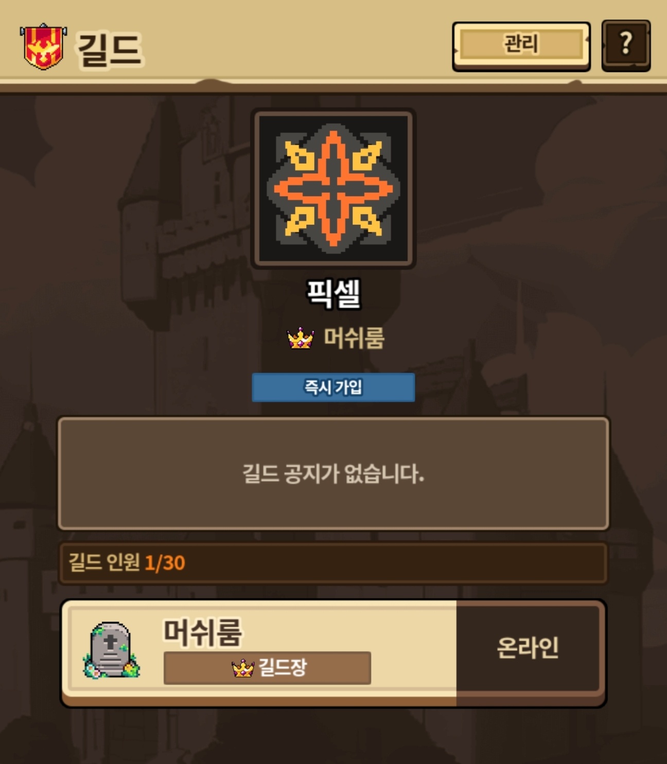 길드이름은 처음에는 픽셀교단으로 지은만큼 상황극이 있을수도 없을 수 도 있습니다...!